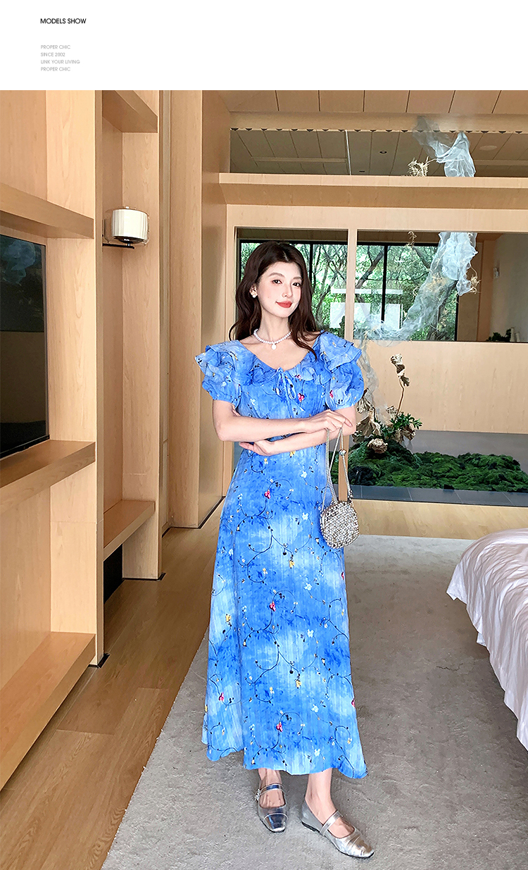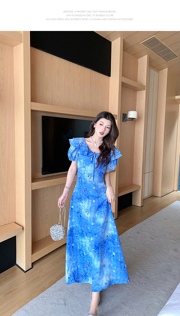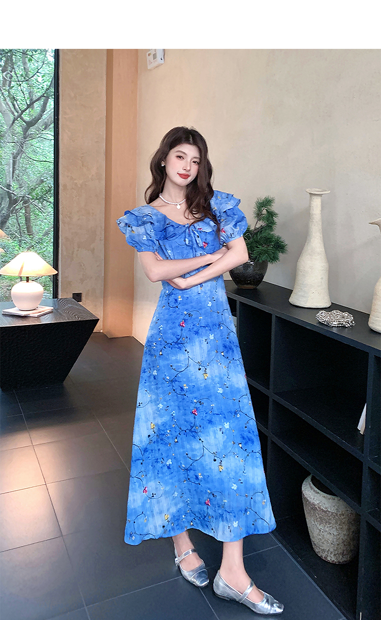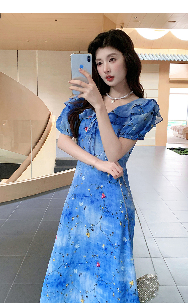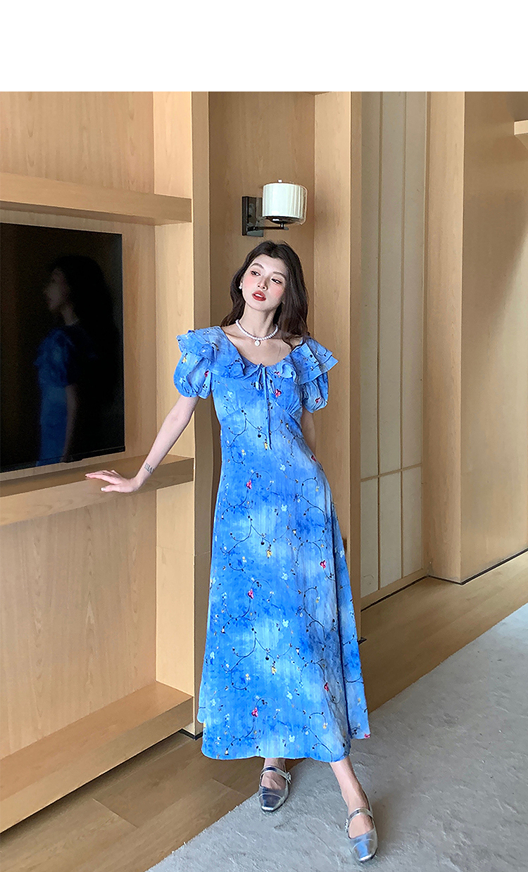 西遇碎花泡泡袖连衣裙女夏季新款娃娃领收腰显瘦a字长裙SS051112