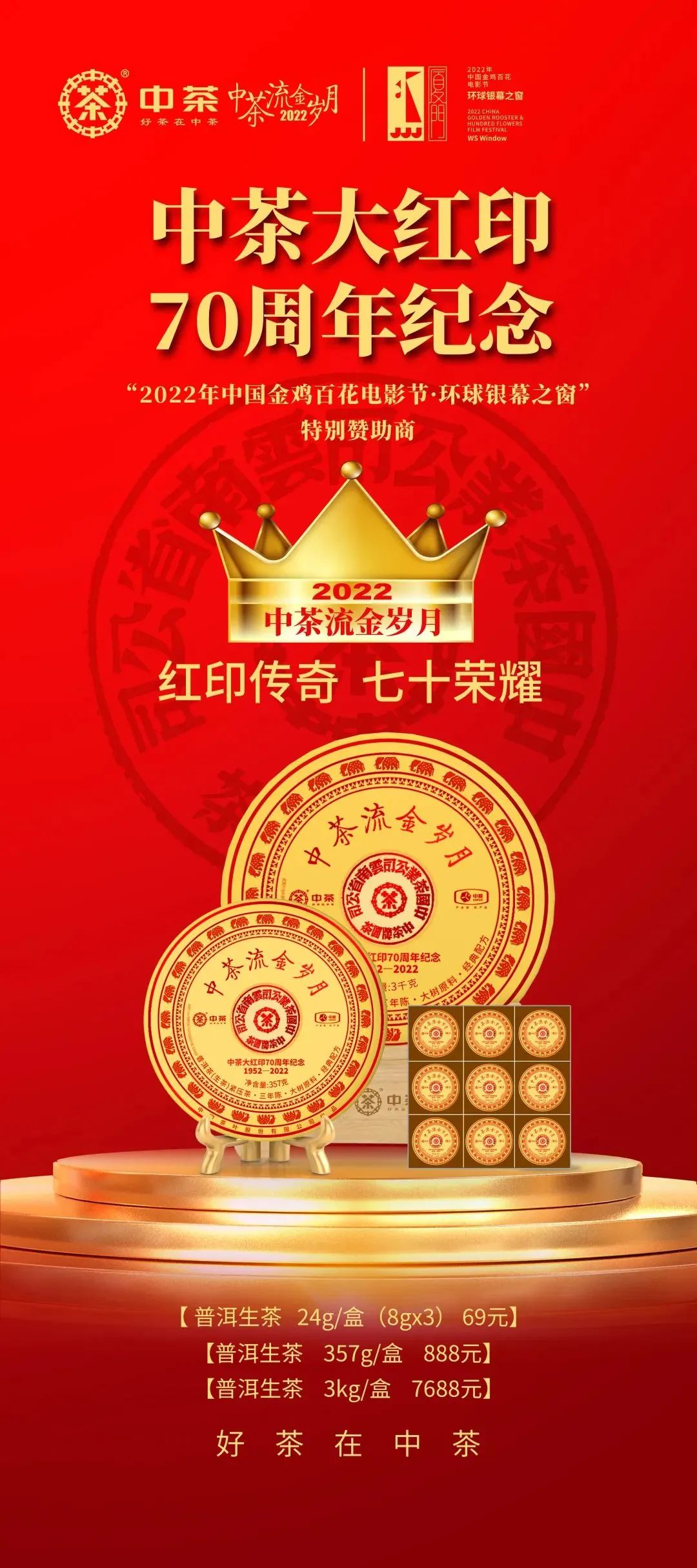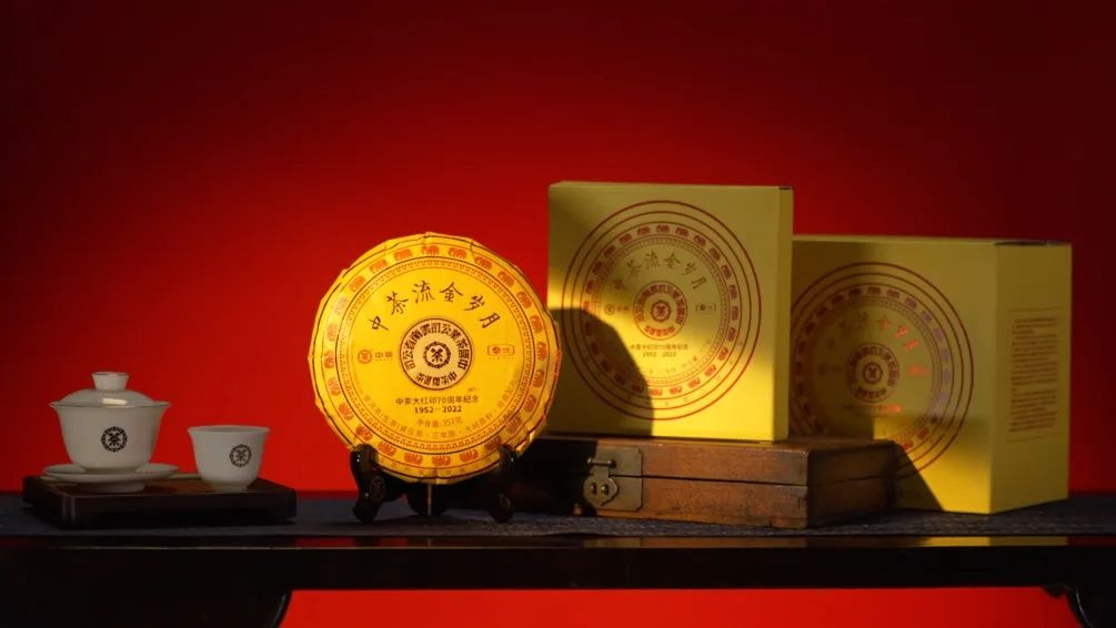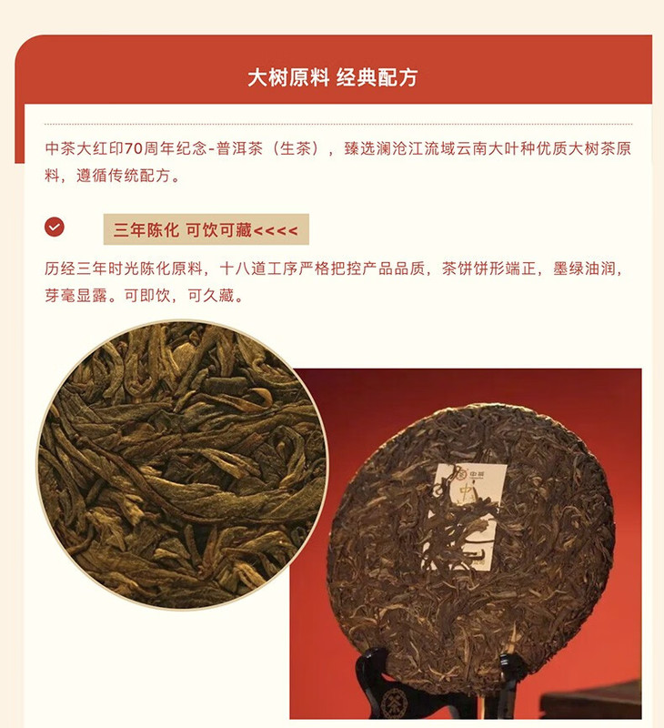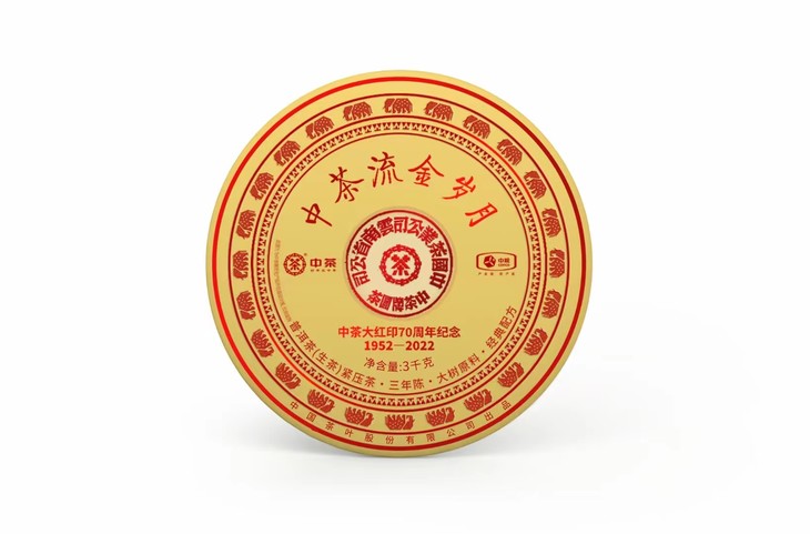 中粮-中茶2022年中茶流金岁月七十周年纪念款(三年陈)大红印普洱生茶3kg/饼/干仓直发