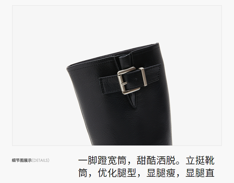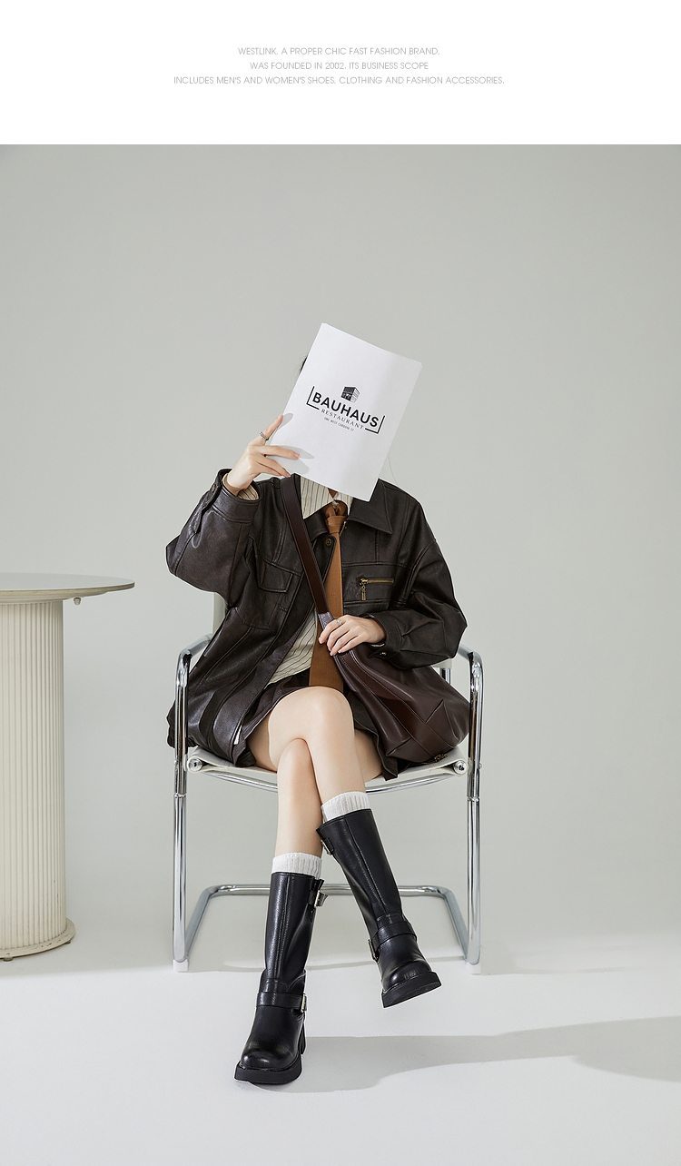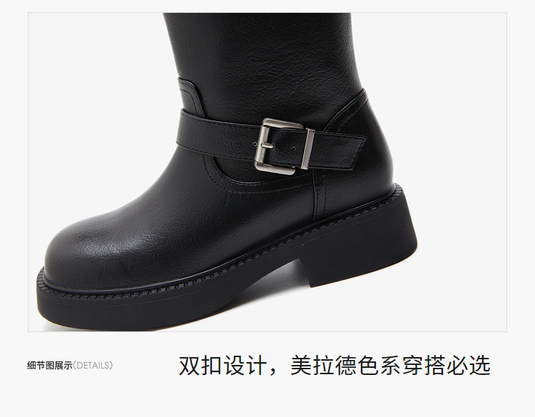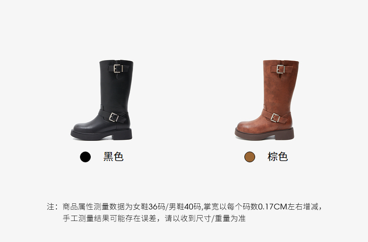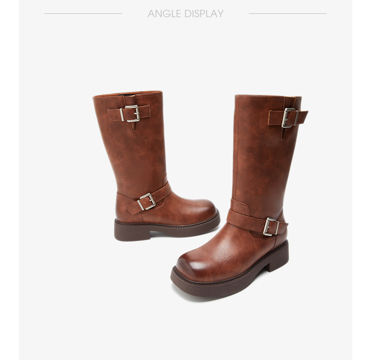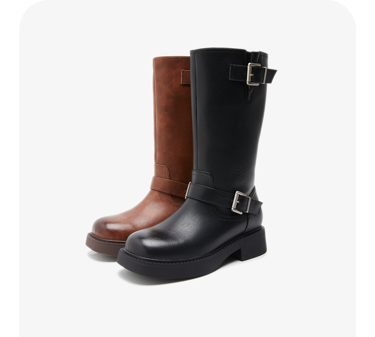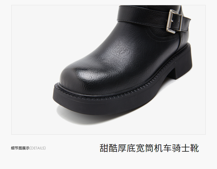 西遇机车骑士靴女新款秋冬复古美拉德宽筒中筒靴西部牛仔靴子V0034127