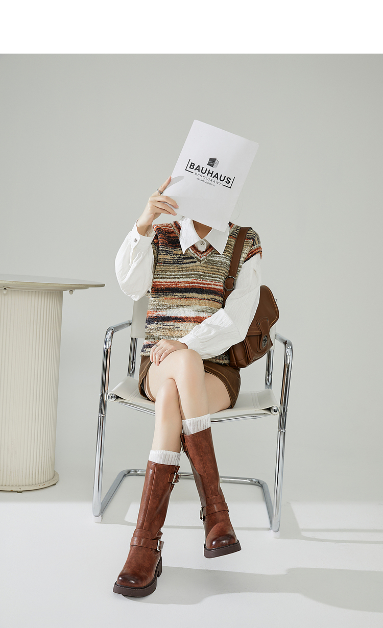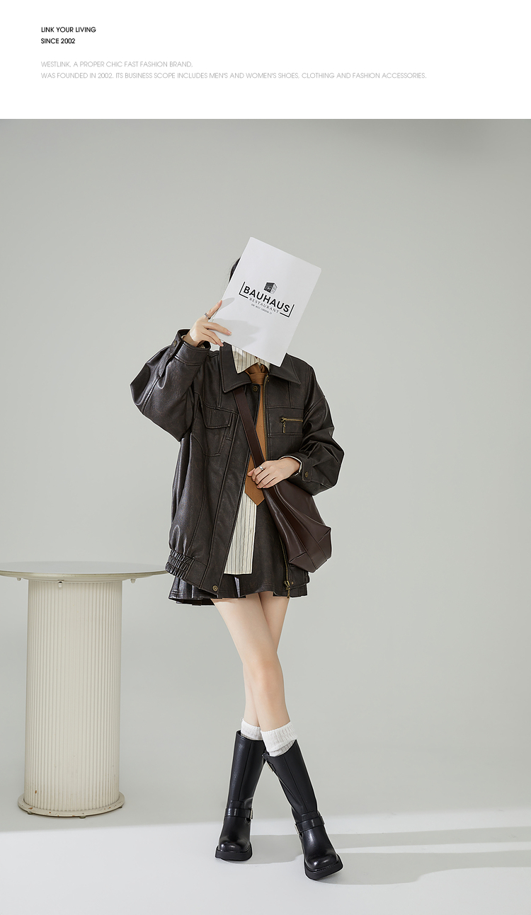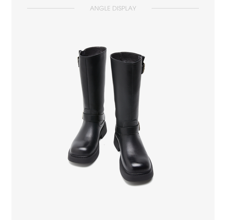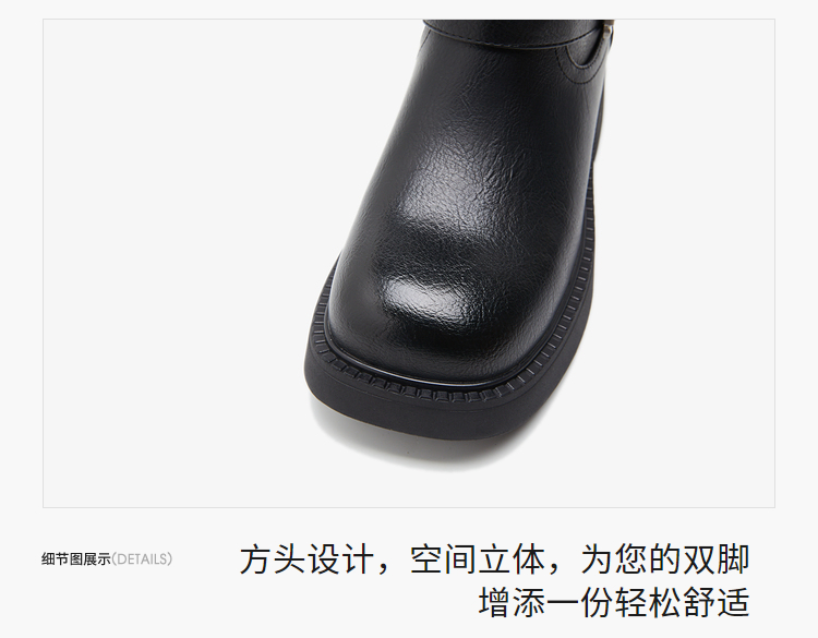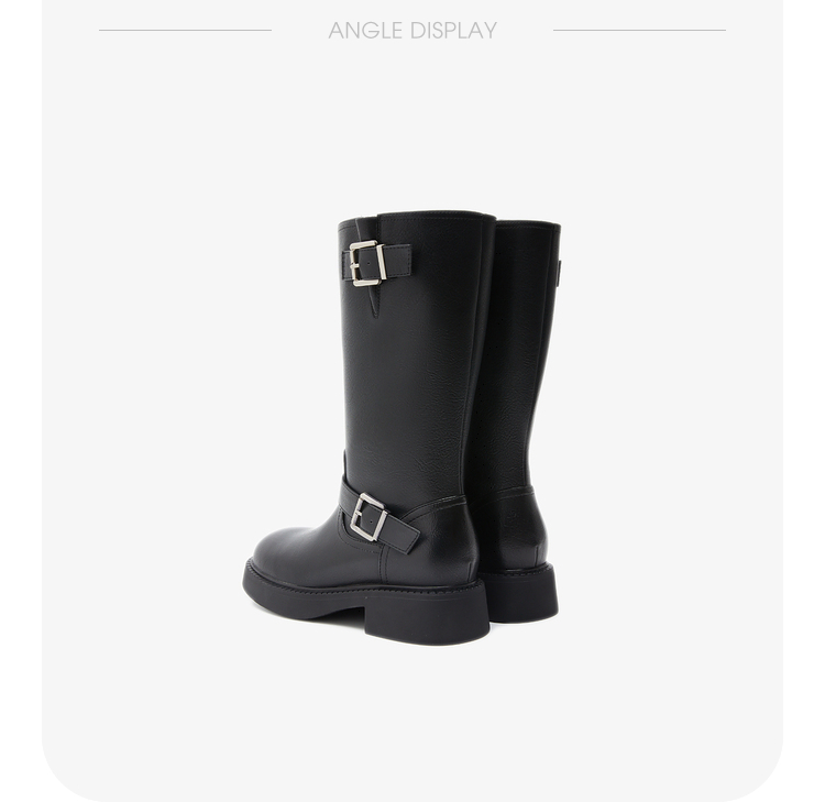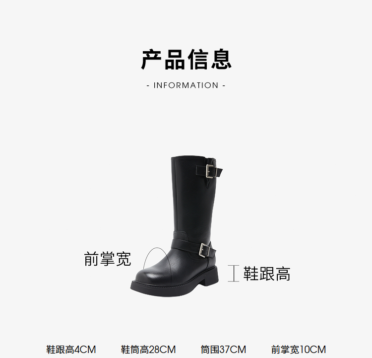 西遇机车骑士靴女新款秋冬复古美拉德宽筒中筒靴西部牛仔靴子V0034127