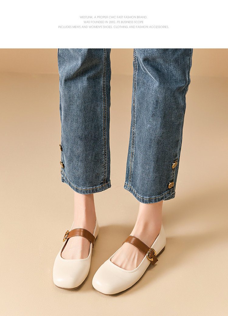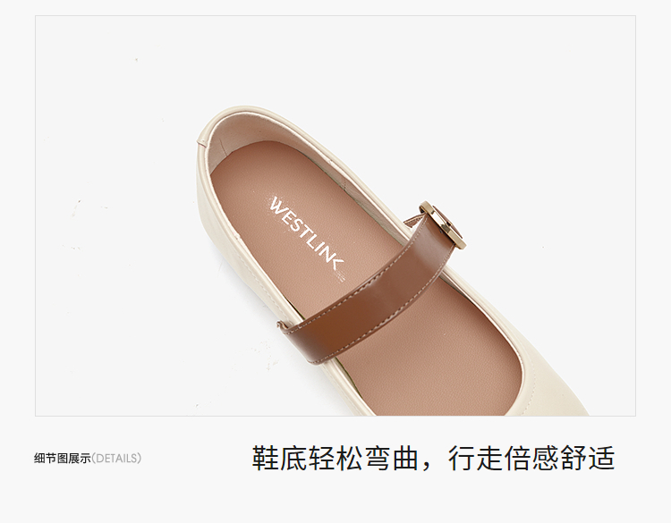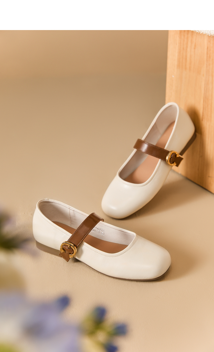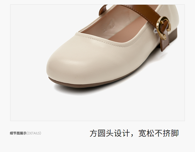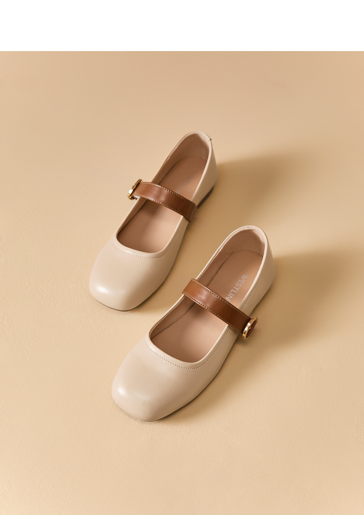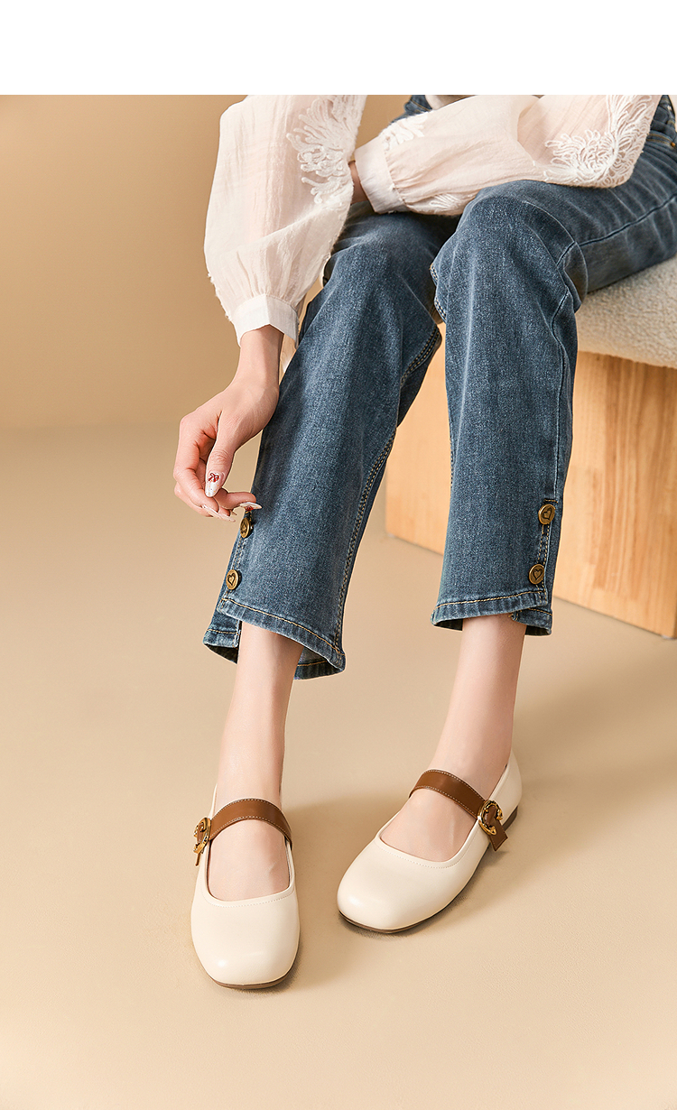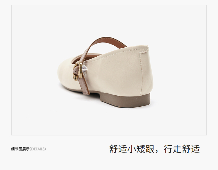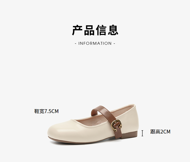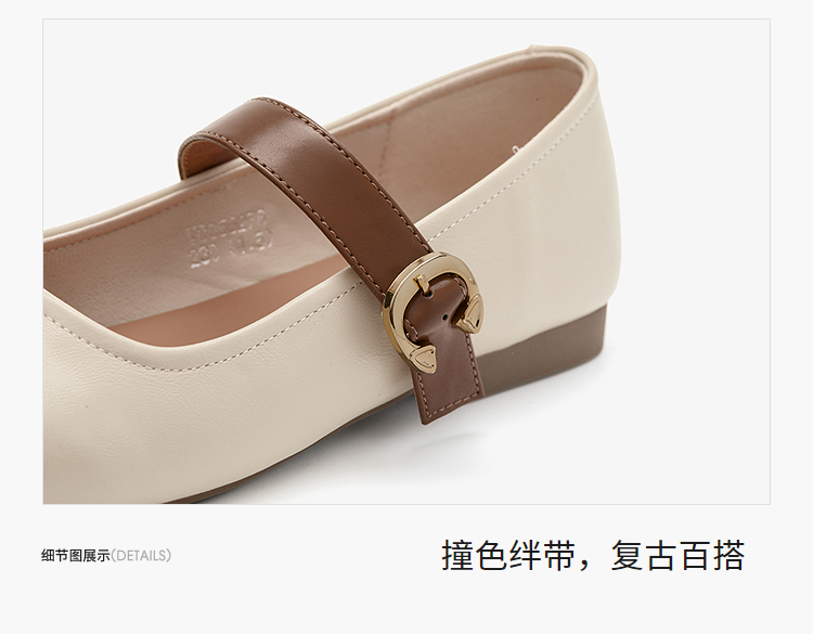 西遇圆头玛丽珍鞋女新款复古配裙子单鞋平底白色小皮鞋V0356276