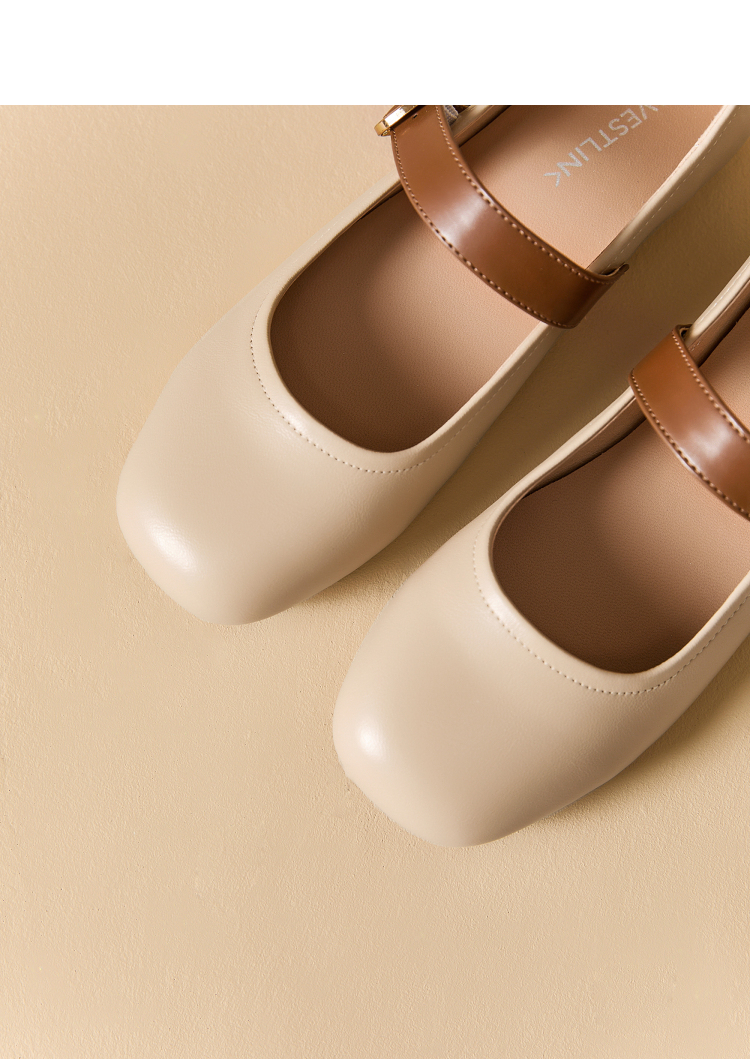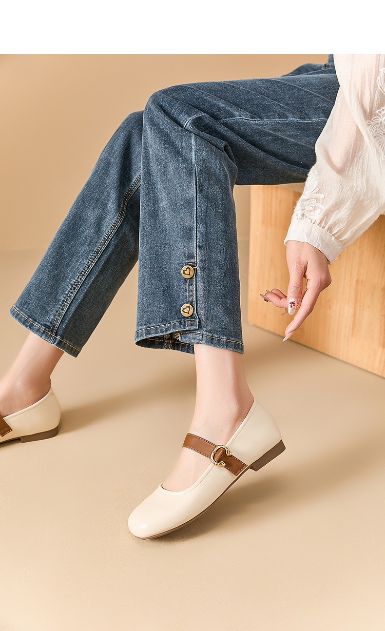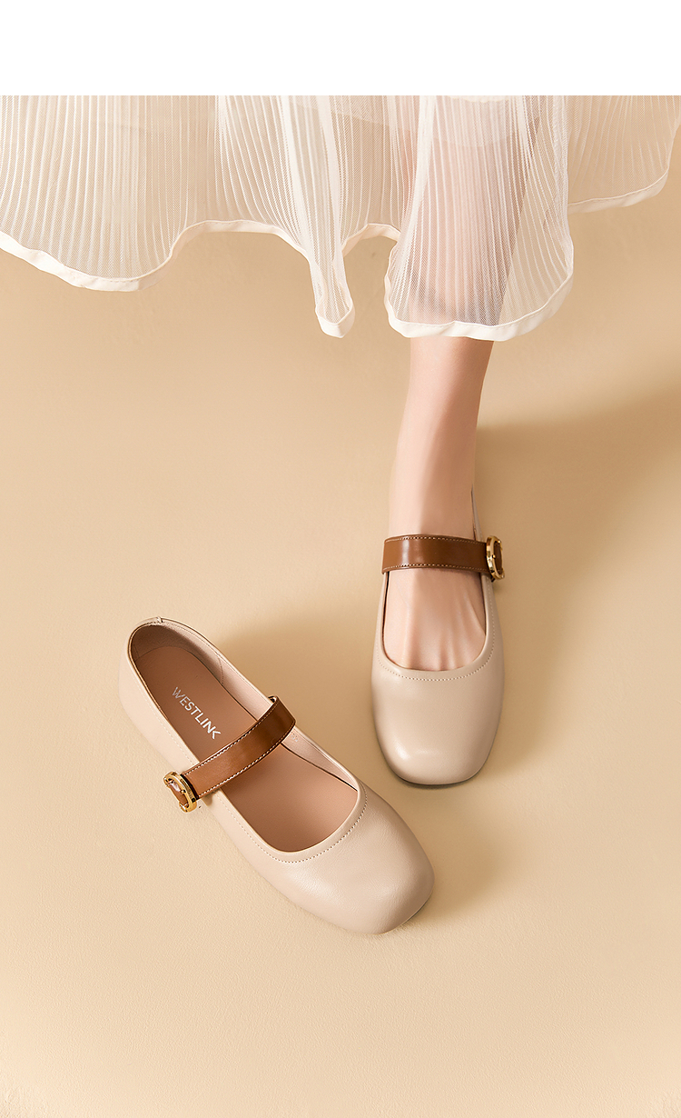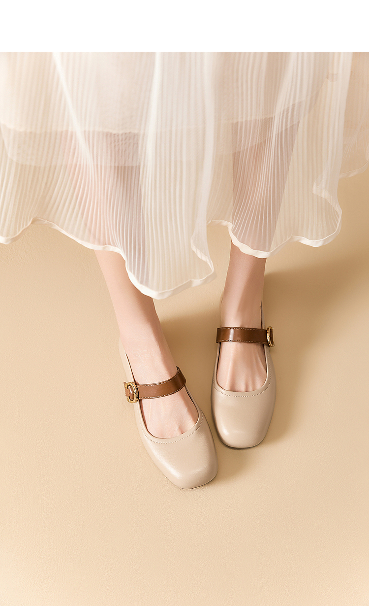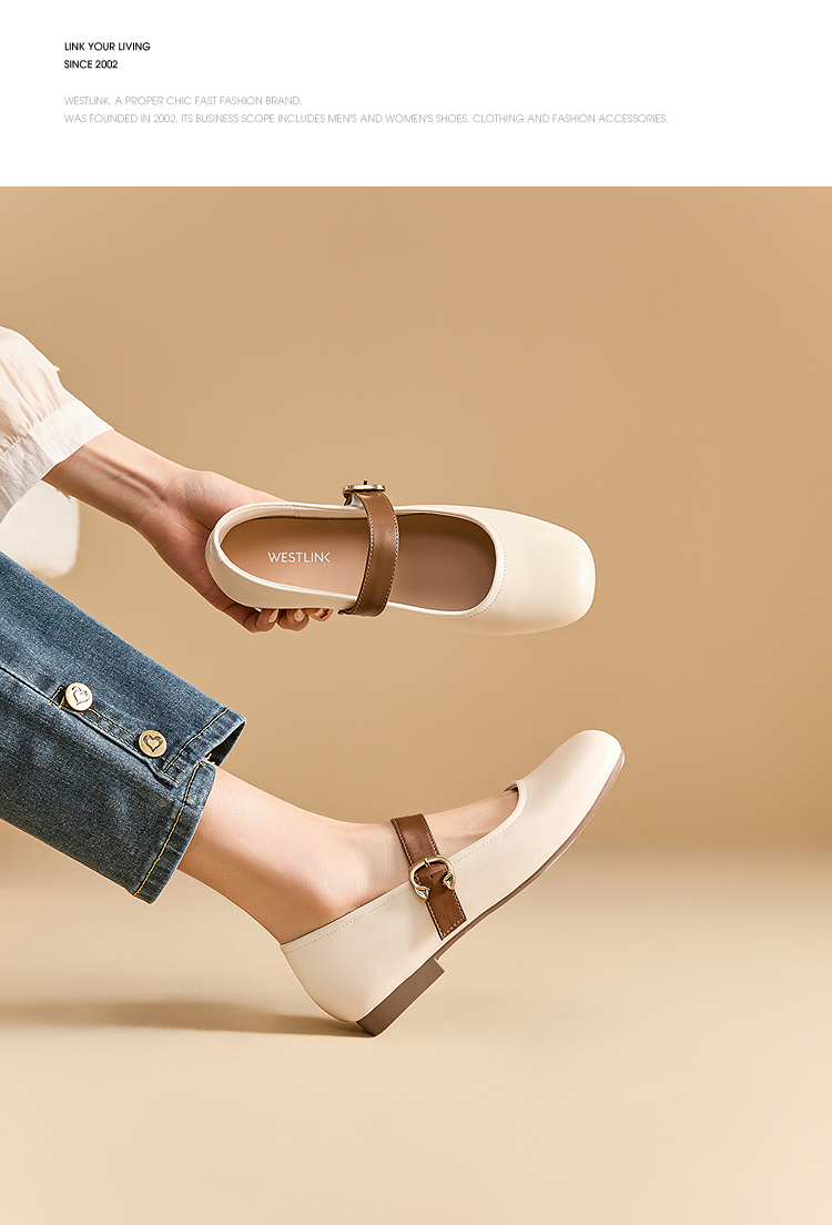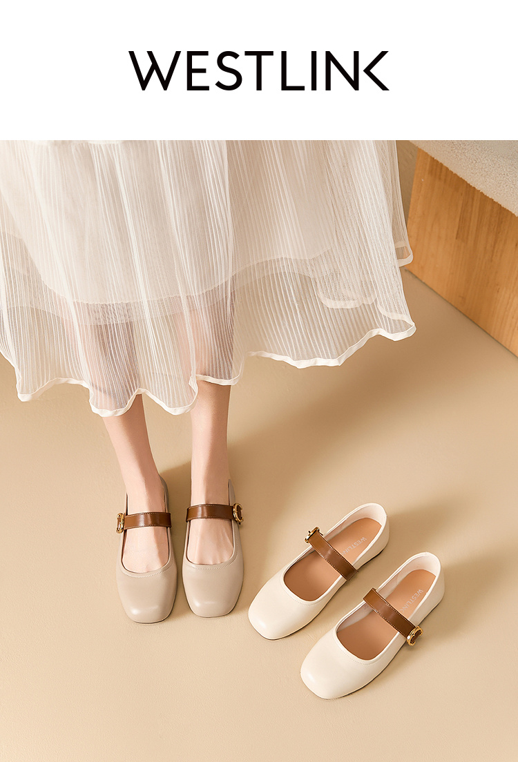 西遇圆头玛丽珍鞋女新款复古配裙子单鞋平底白色小皮鞋V0356276