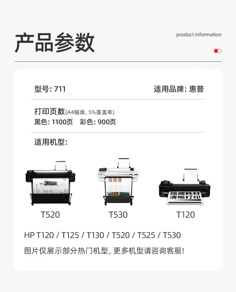 绘威711墨盒 适用惠普HP T120 T520 T530绘图仪墨盒 Designjet T125 T130 T525打印机墨盒 墨水 四色套装
