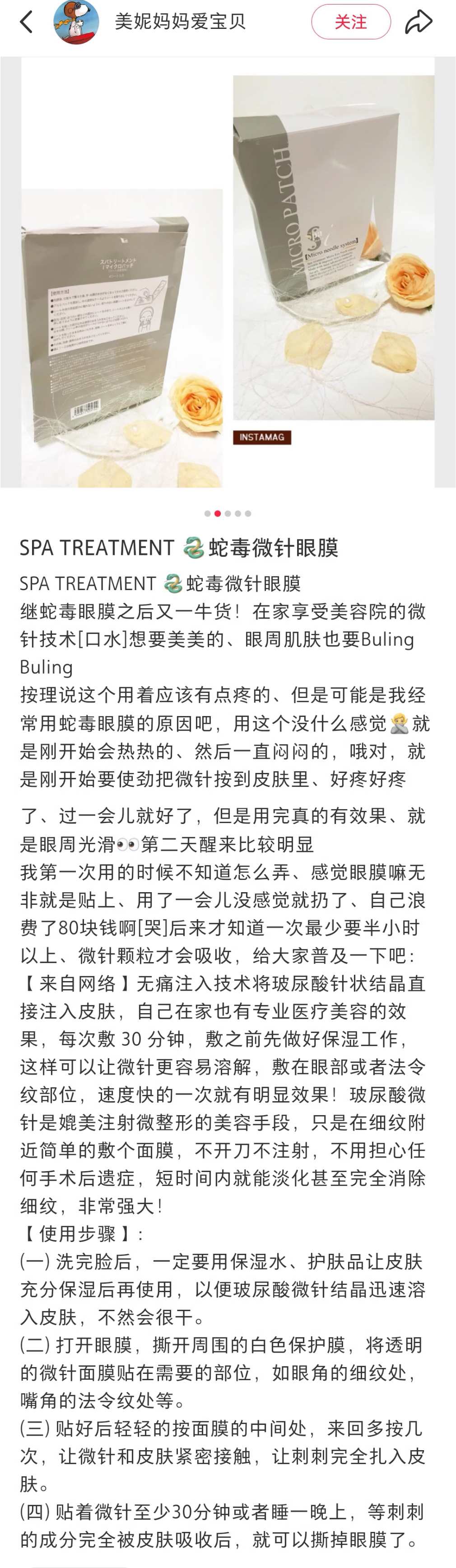 【品名】Spatreatment思派雅微针可融眼膜4对/盒 红色蛇毒/白色玻尿酸