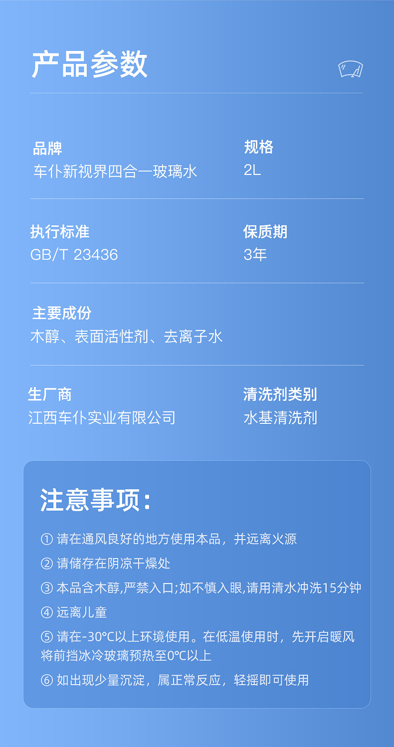 车仆新视界四合一玻璃水 强力去污 除油膜 快干无痕