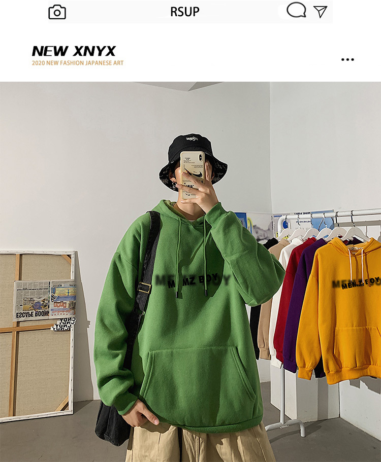 2022时尚休闲秋冬款港风chic加绒卫衣男连帽潮ins炸街上衣ulzzang外套宽松百搭