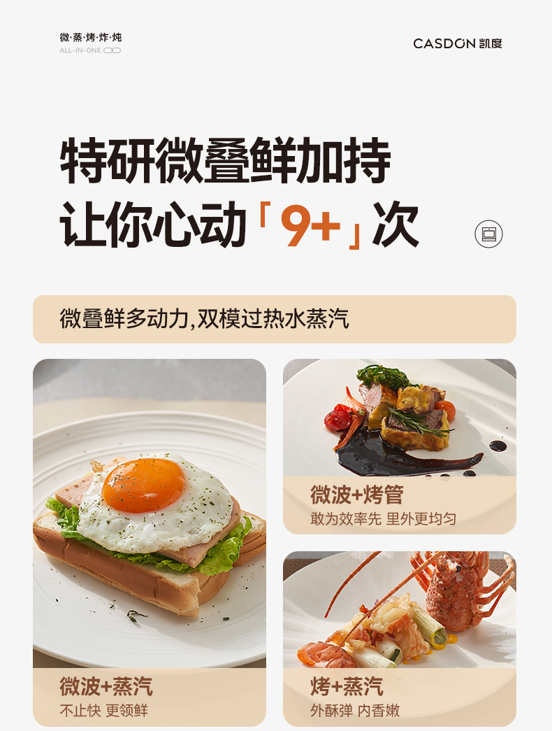 【超级旗舰】凯度B10微蒸烤炸一体机微波炉水波炉四合一台式家用