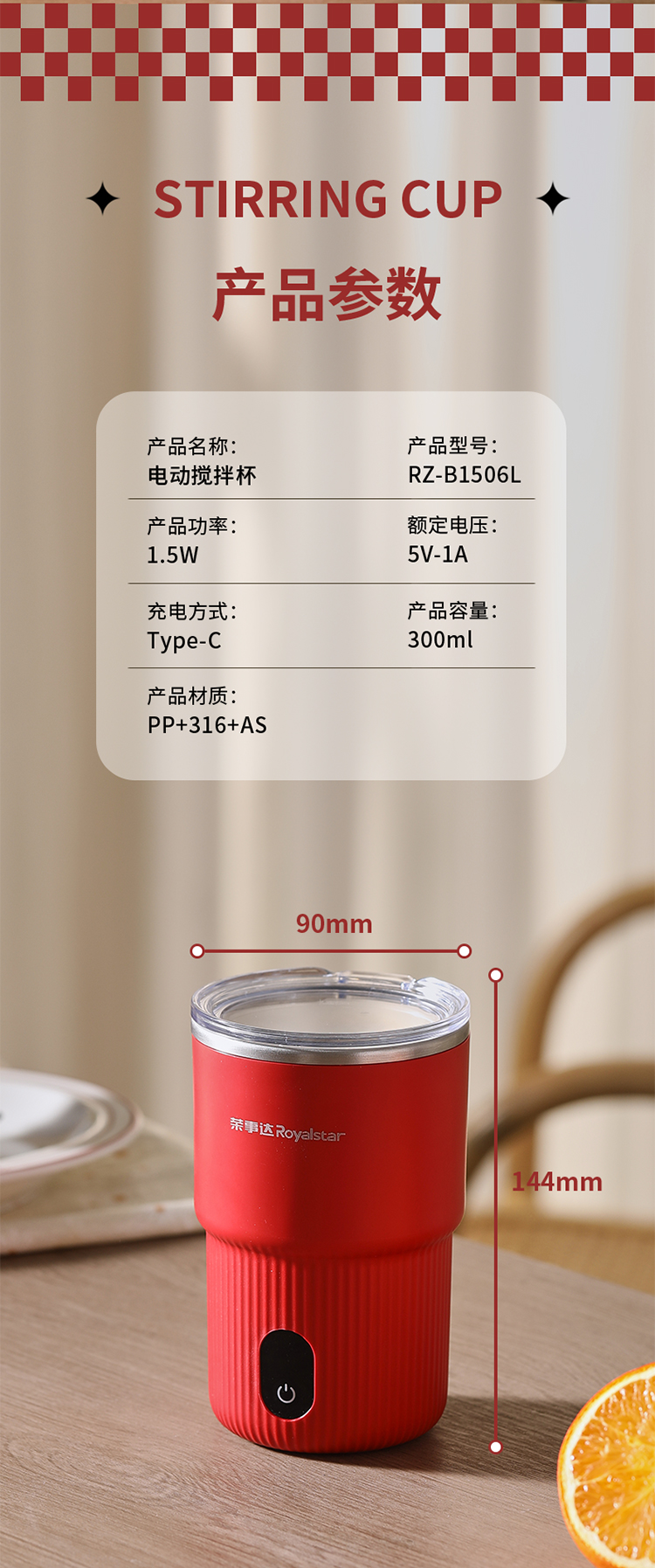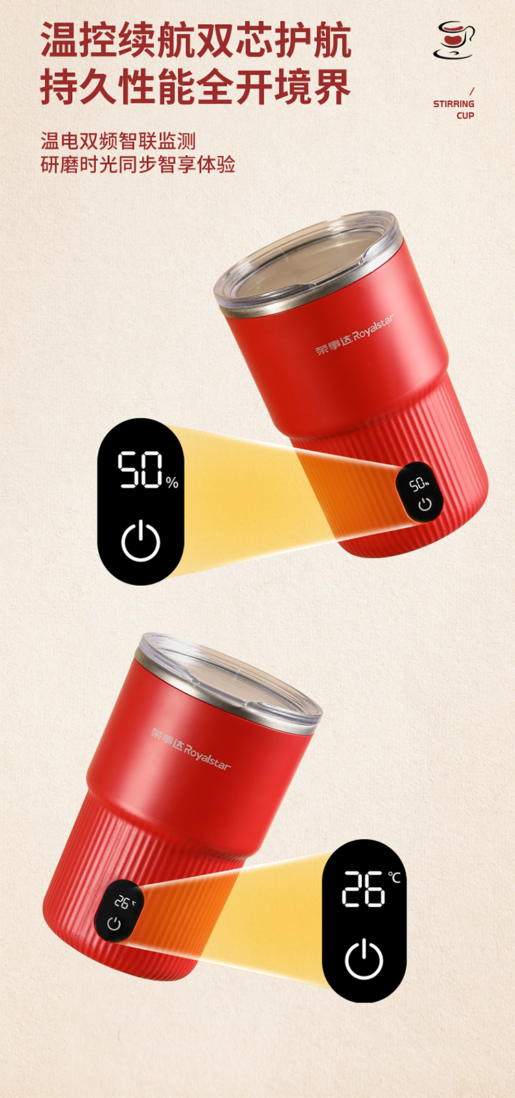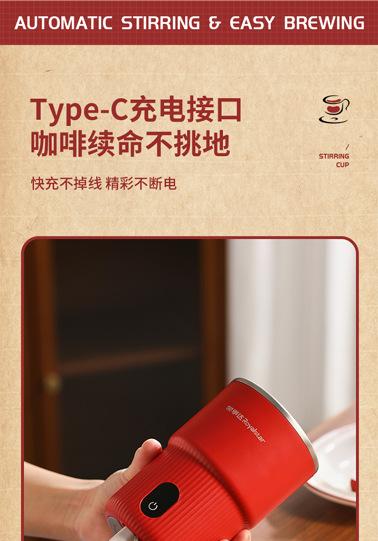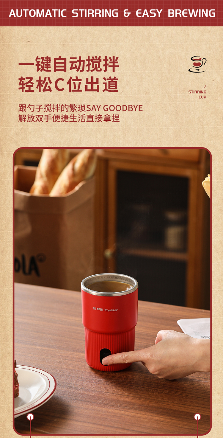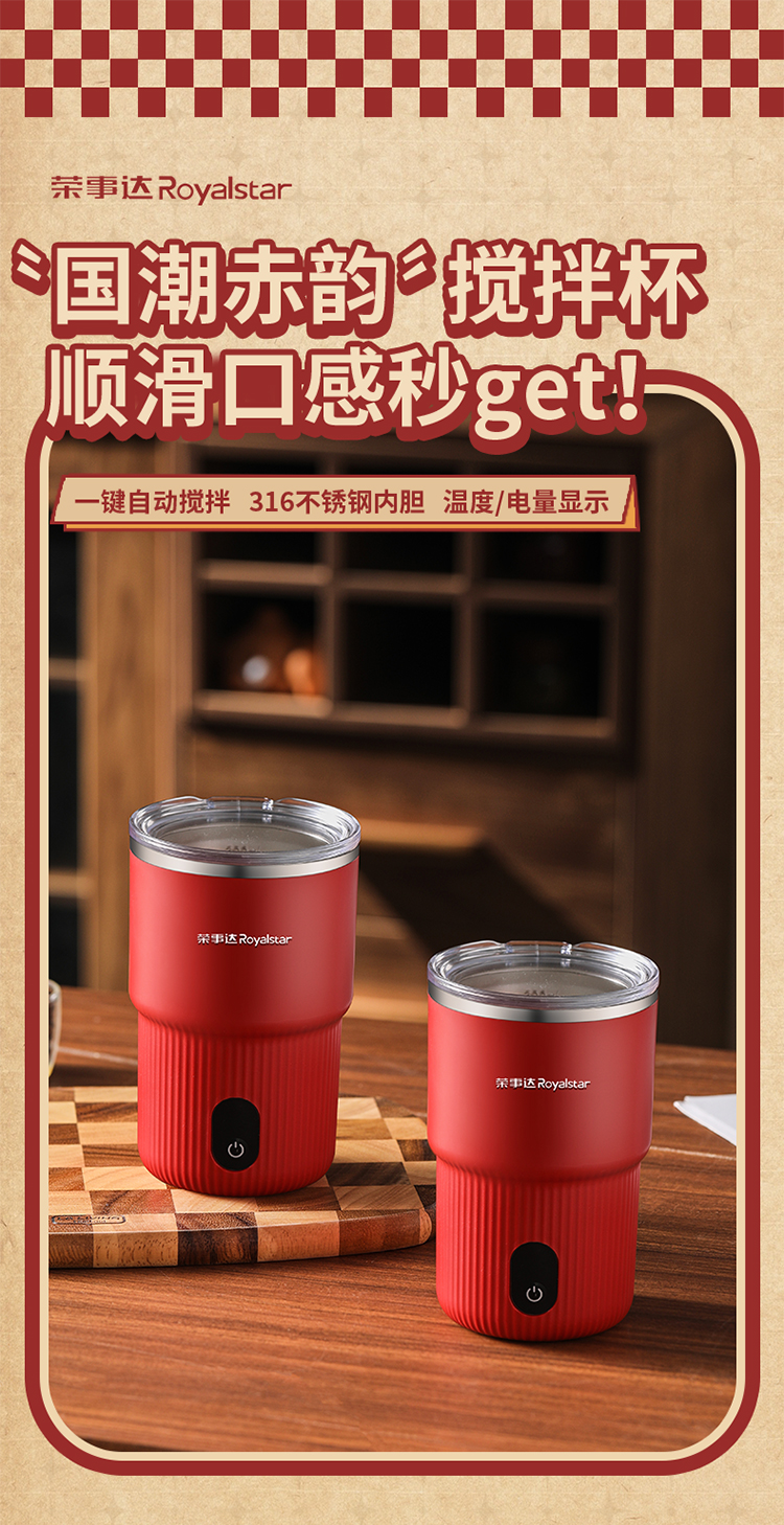 【自动搅拌 温度显示】荣事达电动搅拌杯RZ-B1506L