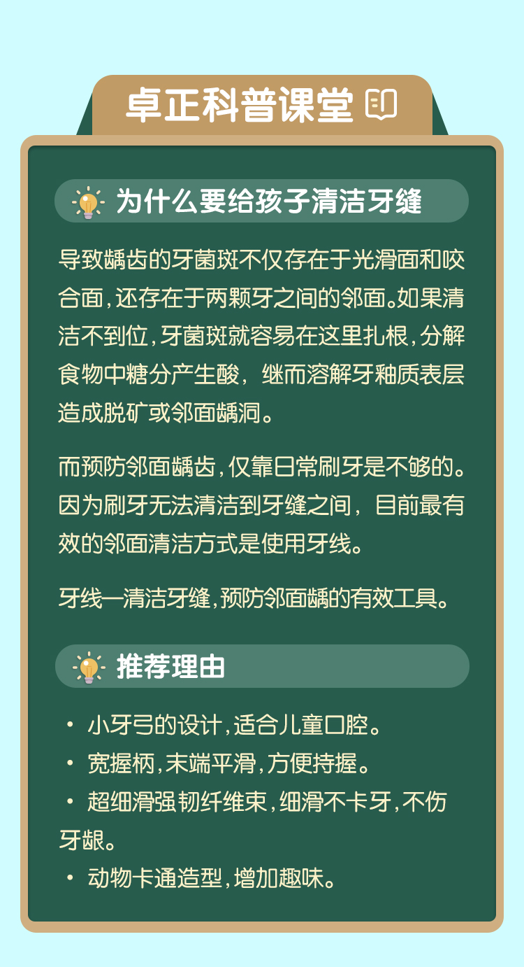 3M儿童安全牙线棒38支/包 卡通造型 趣味洁齿