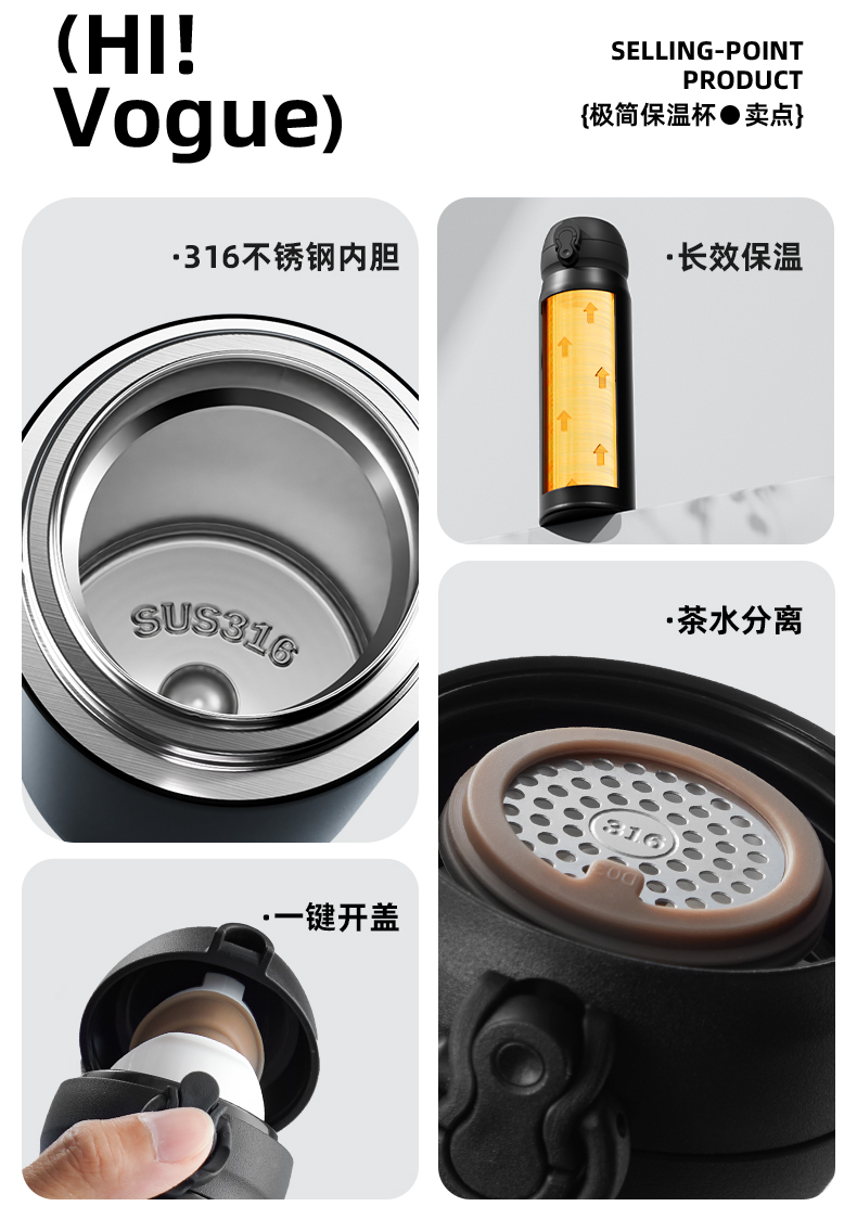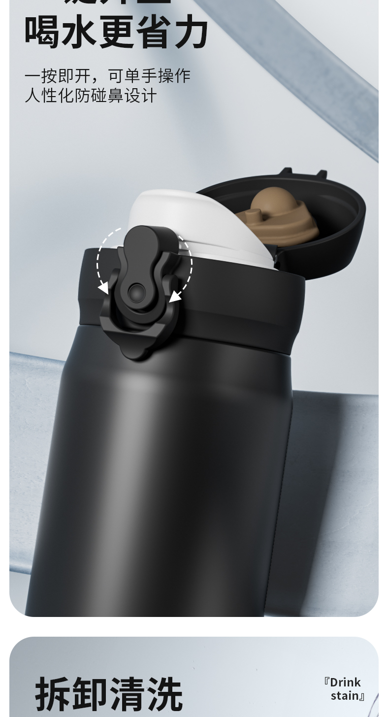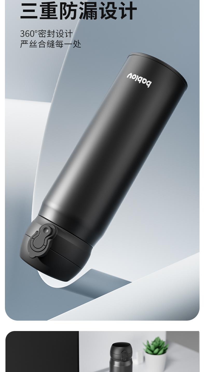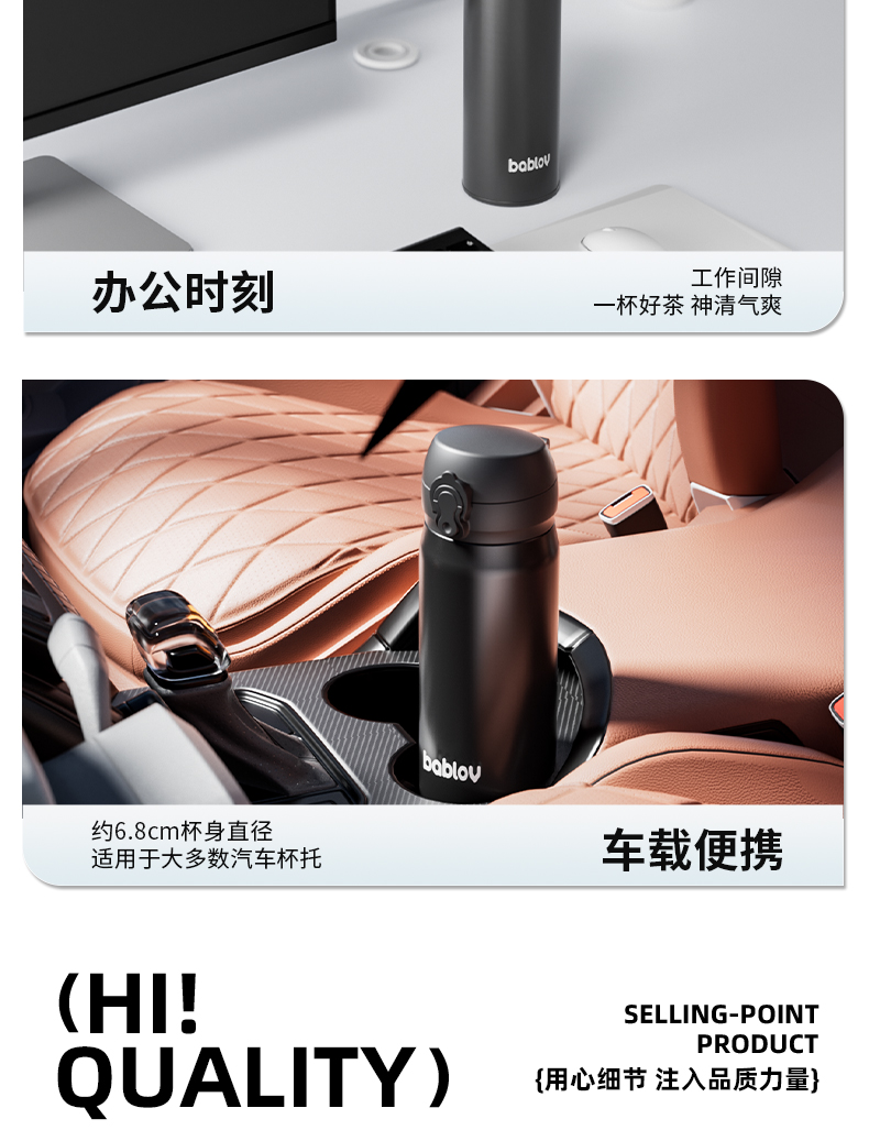 bablov发财保温杯男士便携弹盖水杯车载女高颜值大容量学生新款不锈钢