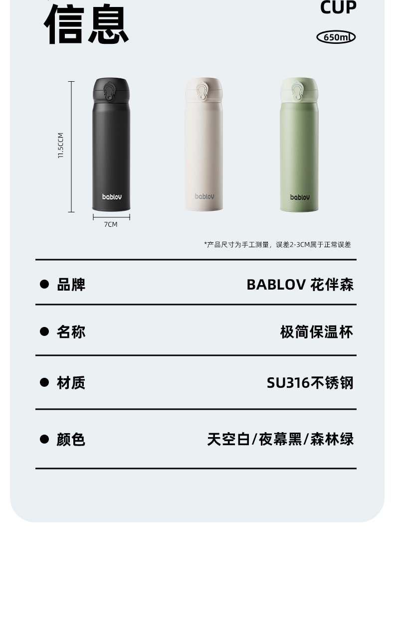 - BABLOV关注中国人的饮水健康,更不断探索未知可能性,专注于新生代自我个性表达,创造玩味新潮的产品体系。希望将水杯带入Z世代年轻人的生活,传递更多“饮”响力。