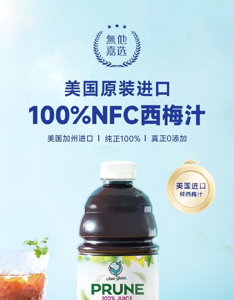 【中欧班列精选2瓶】美国无他嘉选西梅汁 原装进口 水果汁纯蔬菜汁饮料946ml/瓶