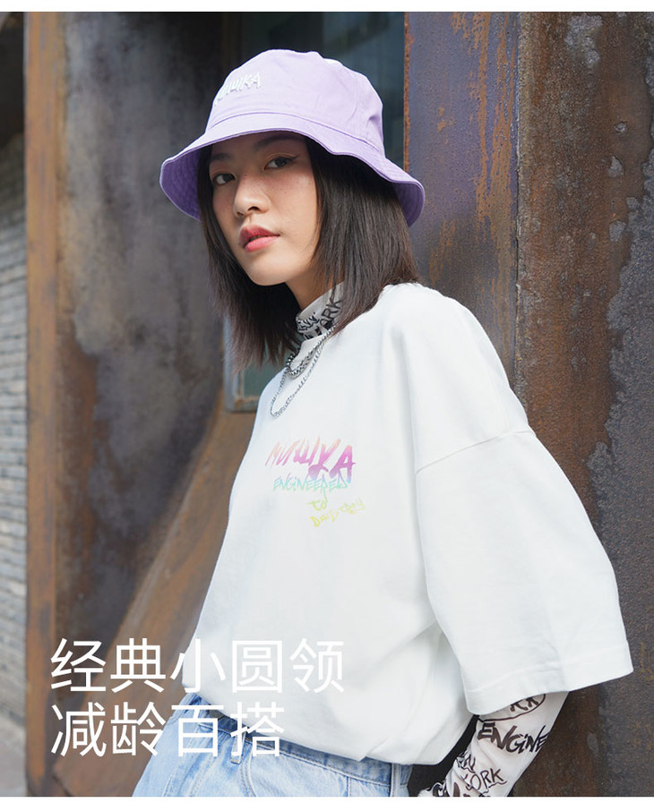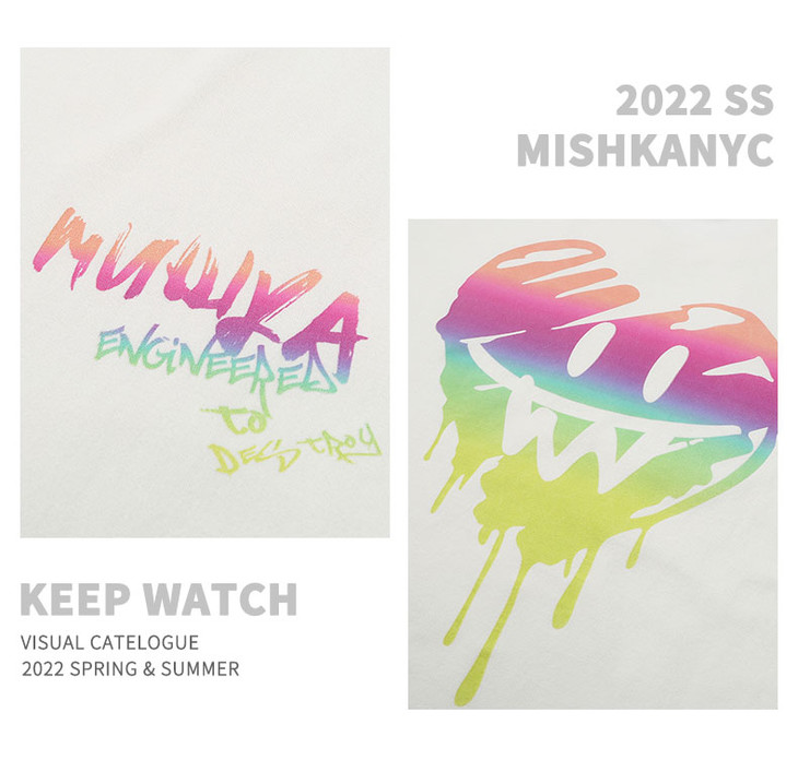 Mishka大眼球潮牌2022春夏新品 爱心系列印花圆领短袖T恤男女同款M21100025M