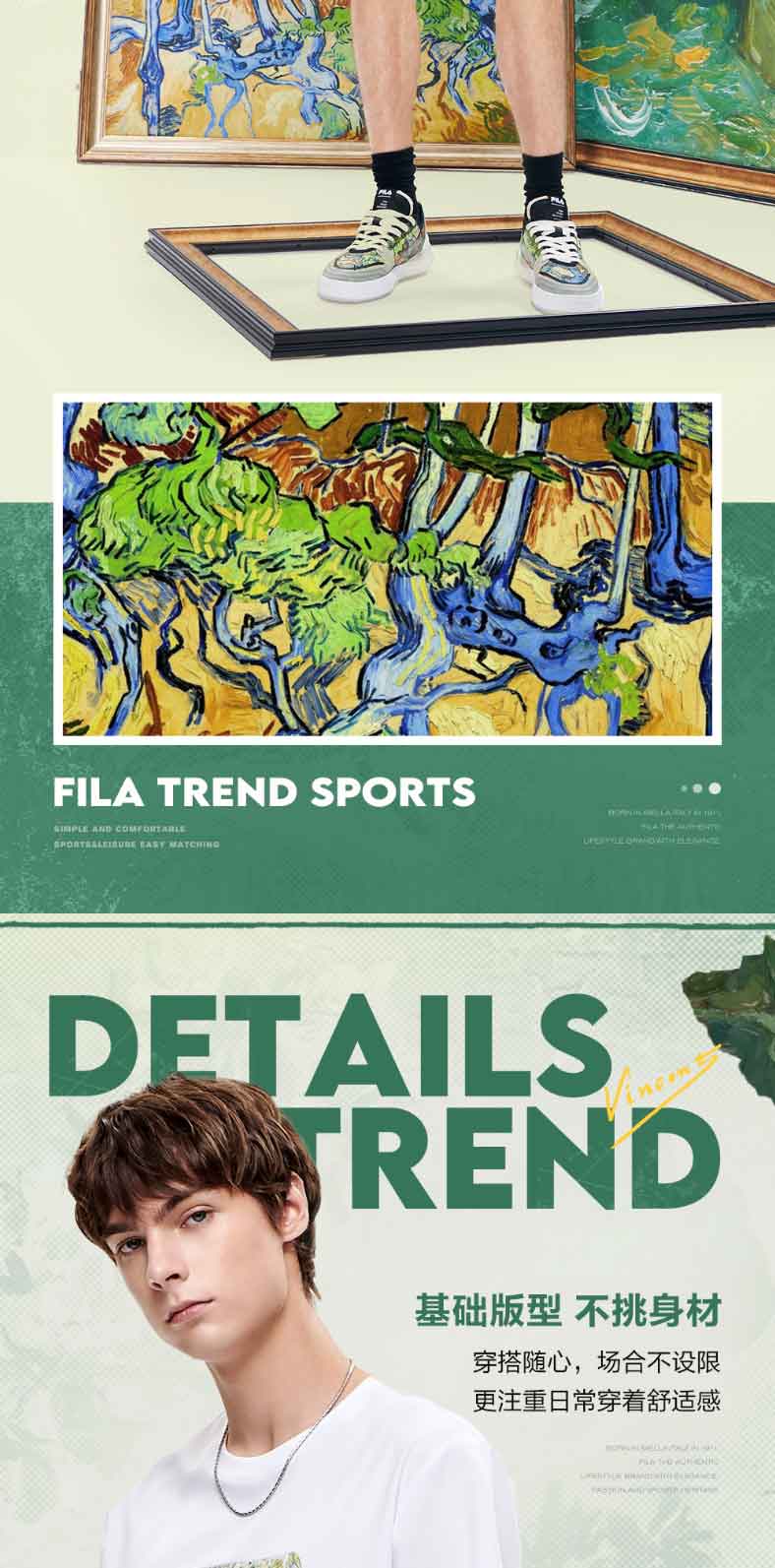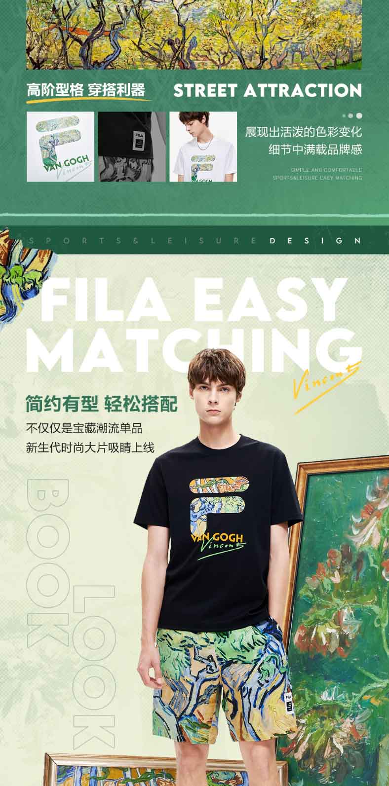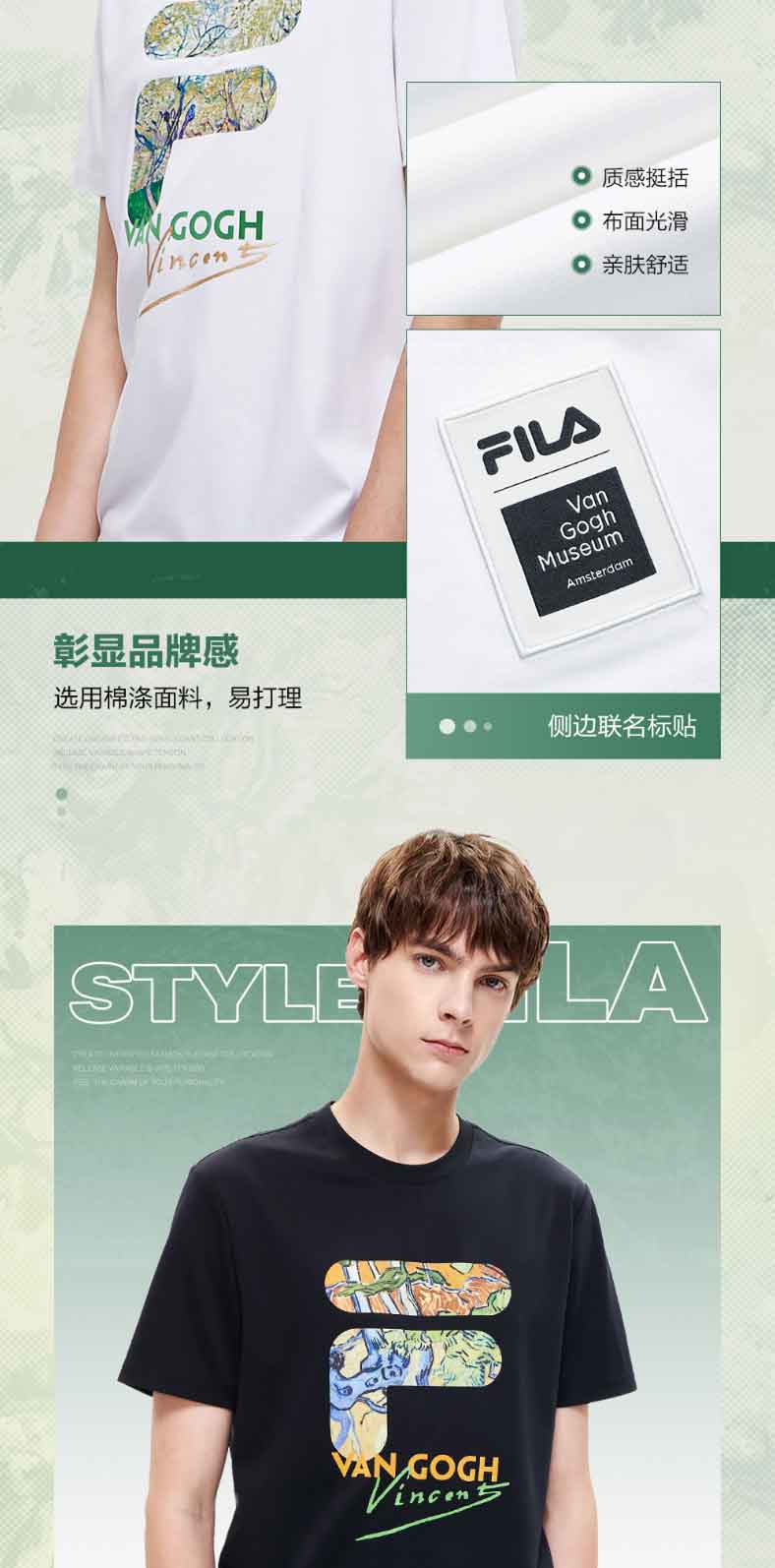 FILA x 梵高博物馆 斐乐联名男士短袖T恤2022年夏季新款运动T恤F11M228111F