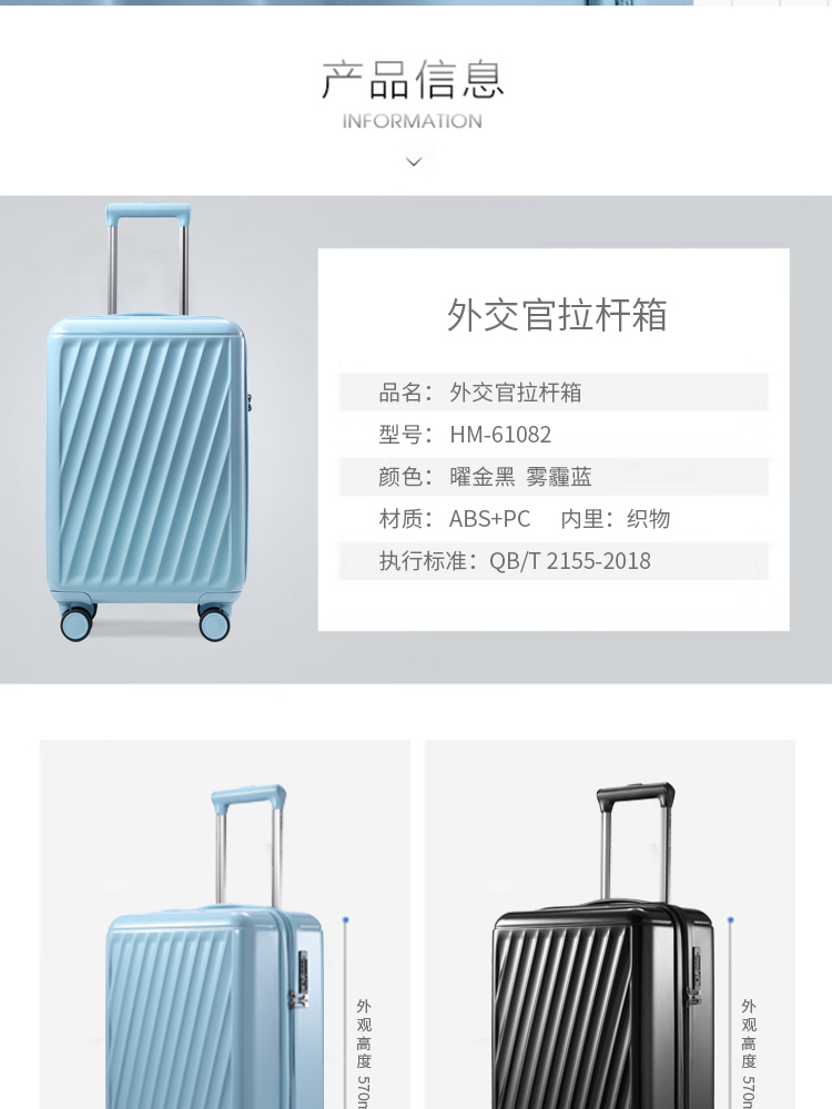 【自营】 外交官Diplomat 休闲商务万向轮拉杆箱 行李箱 20寸 雾霾蓝/耀金黑