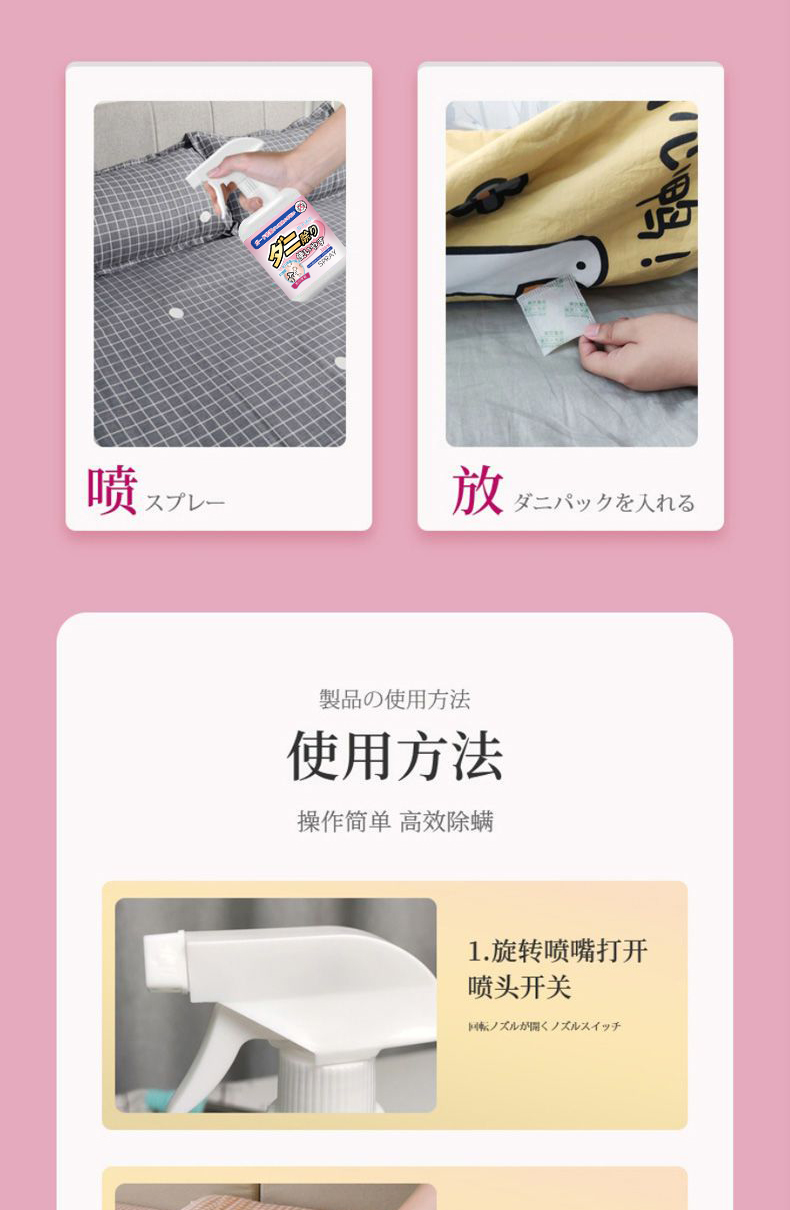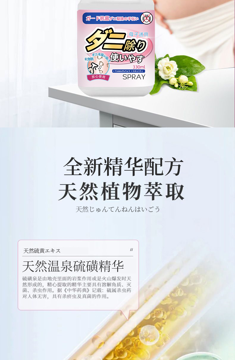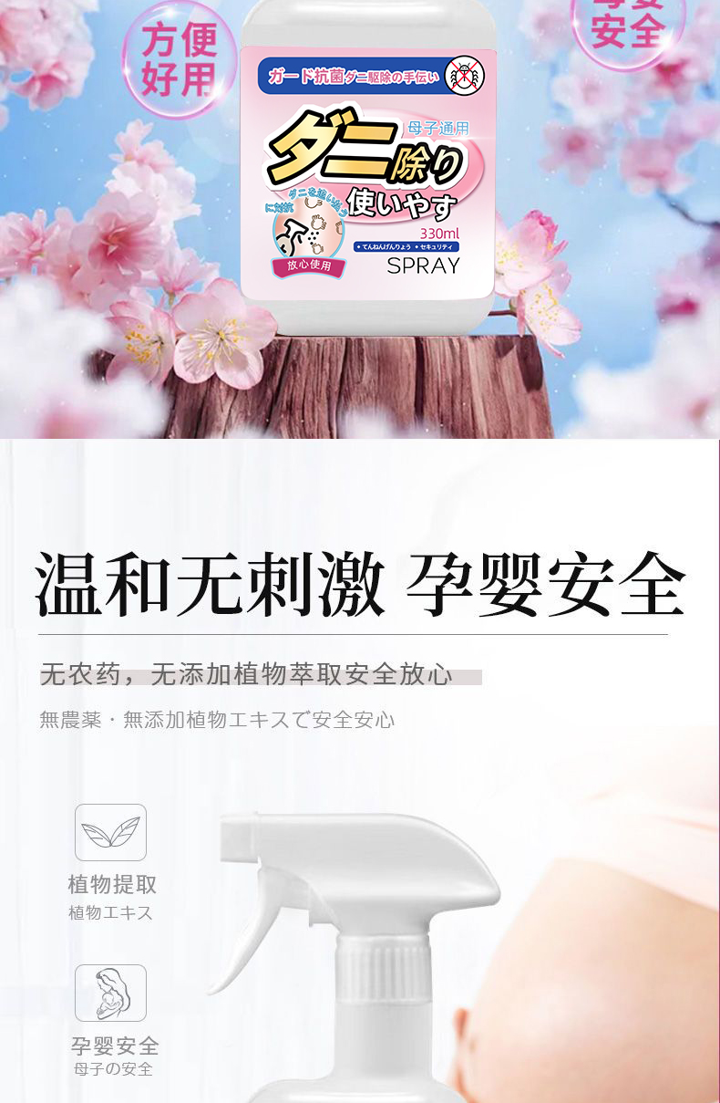 日本SPRAY螨无忧除螨喷雾除螨虫床上免洗家用抑Jun祛螨除 全新精华配方 天然植物提取 温和无刺激 孕婴安全用