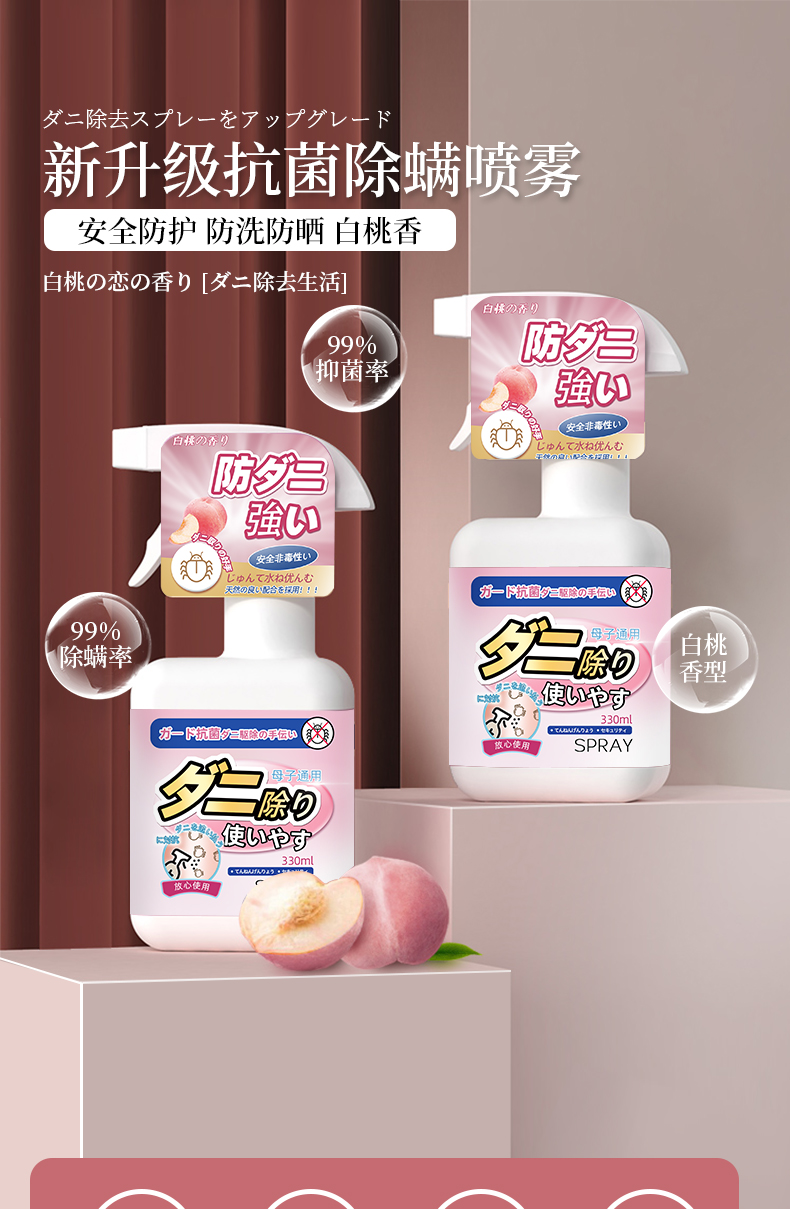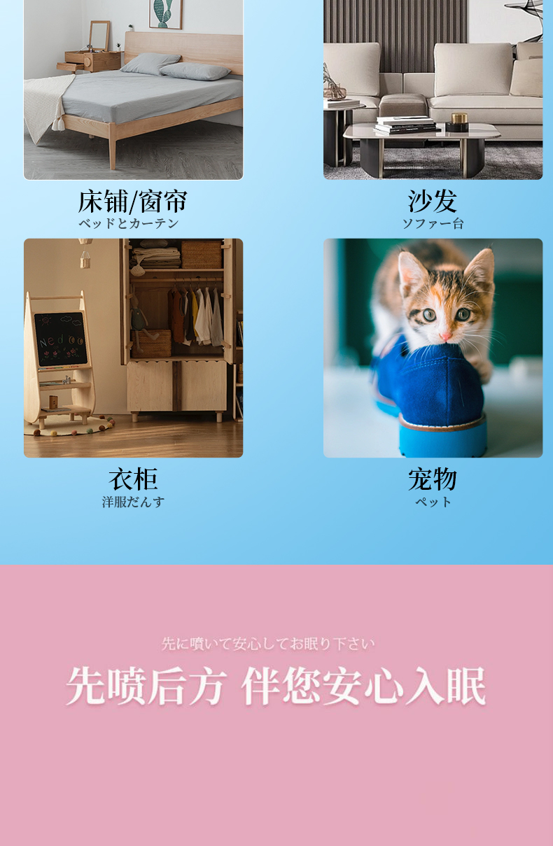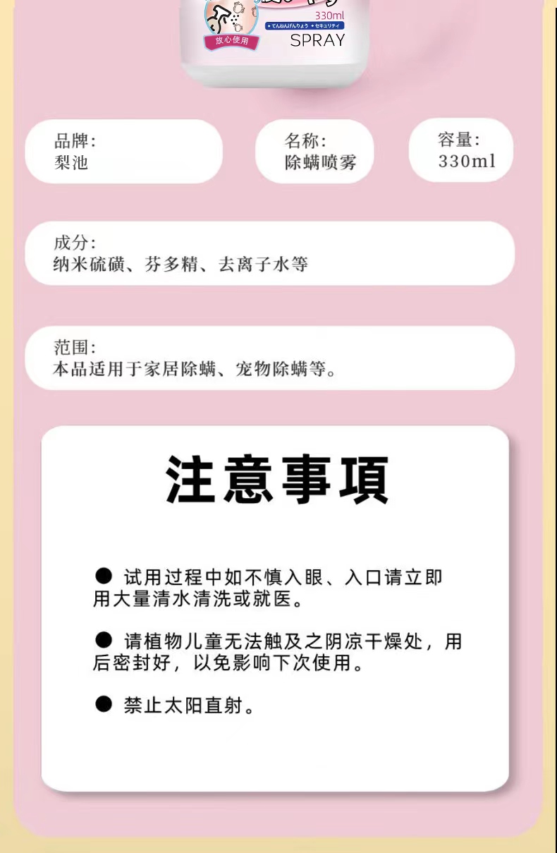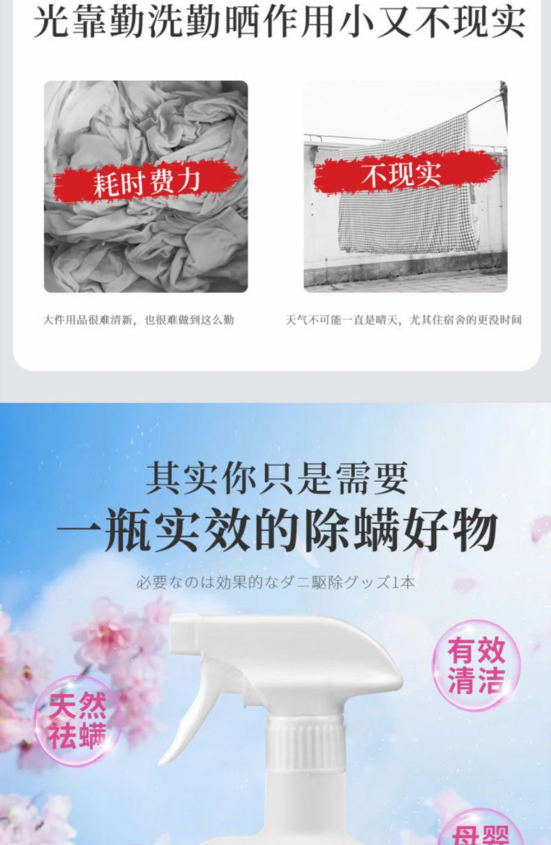 日本SPRAY螨无忧除螨喷雾除螨虫床上免洗家用抑Jun祛螨除 全新精华配方 天然植物提取 温和无刺激 孕婴安全用
