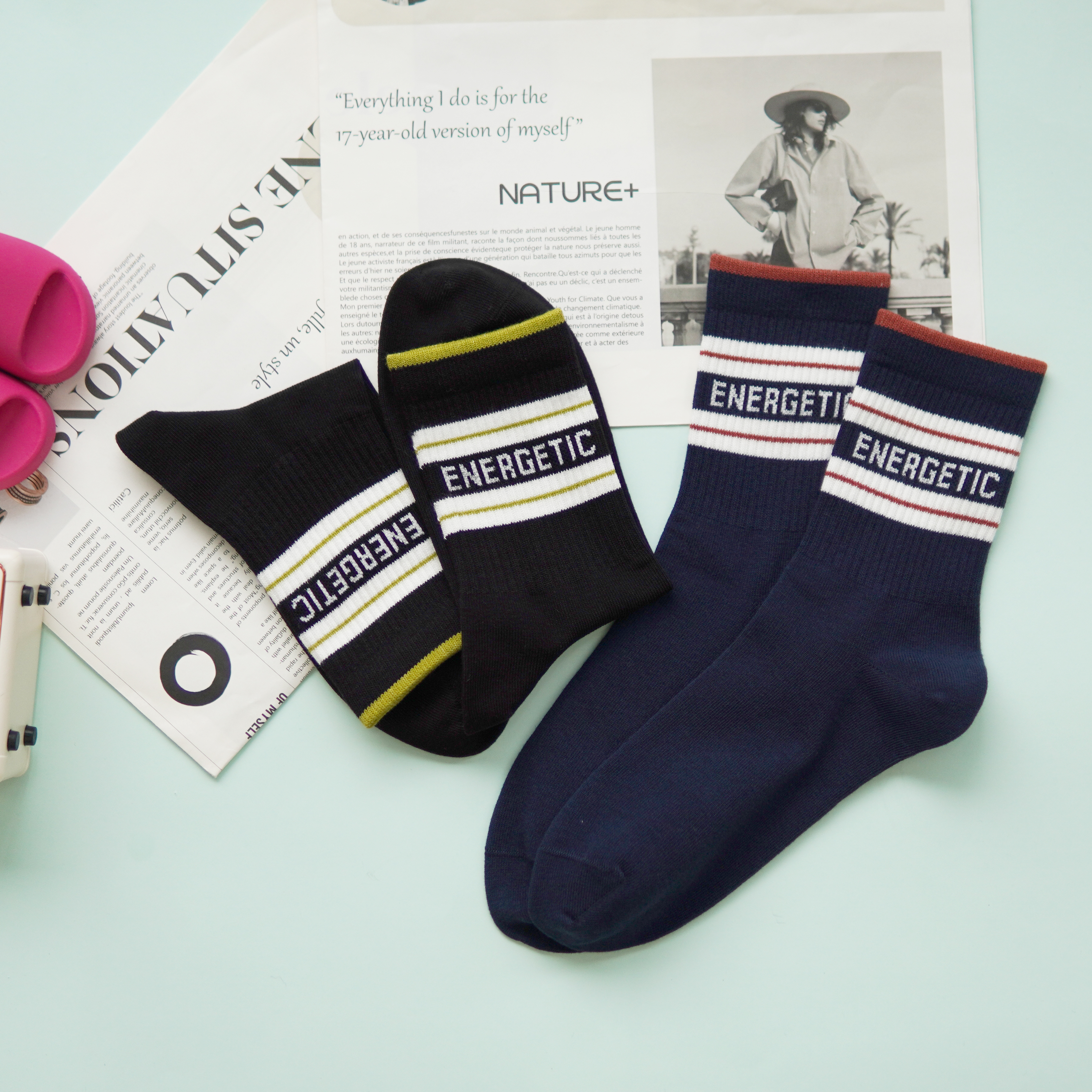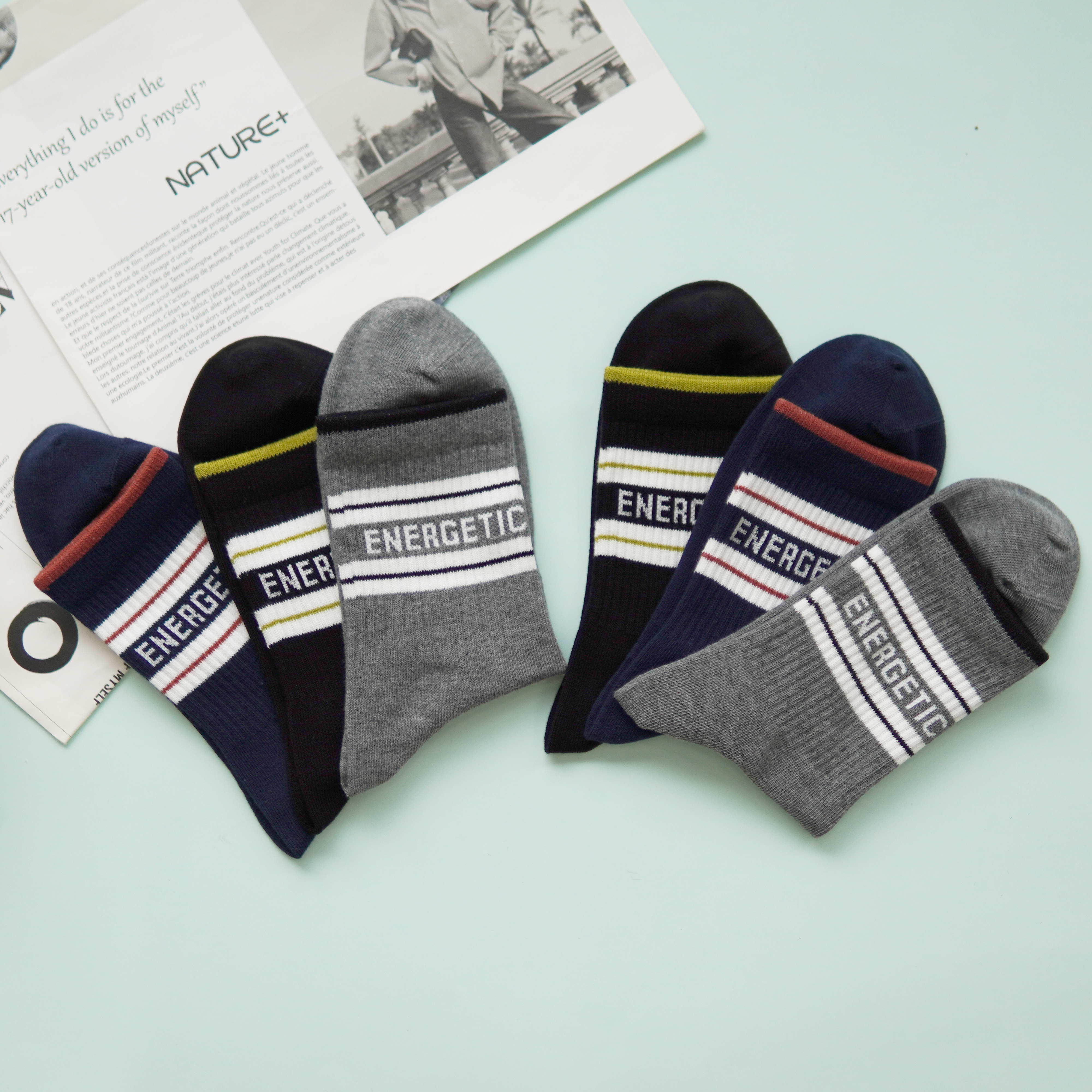 【2双装】男士时尚运动袜中长筒四季棉袜条纹字母男袜【6双6折 2521103】
