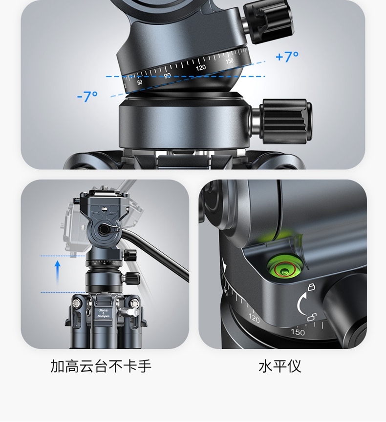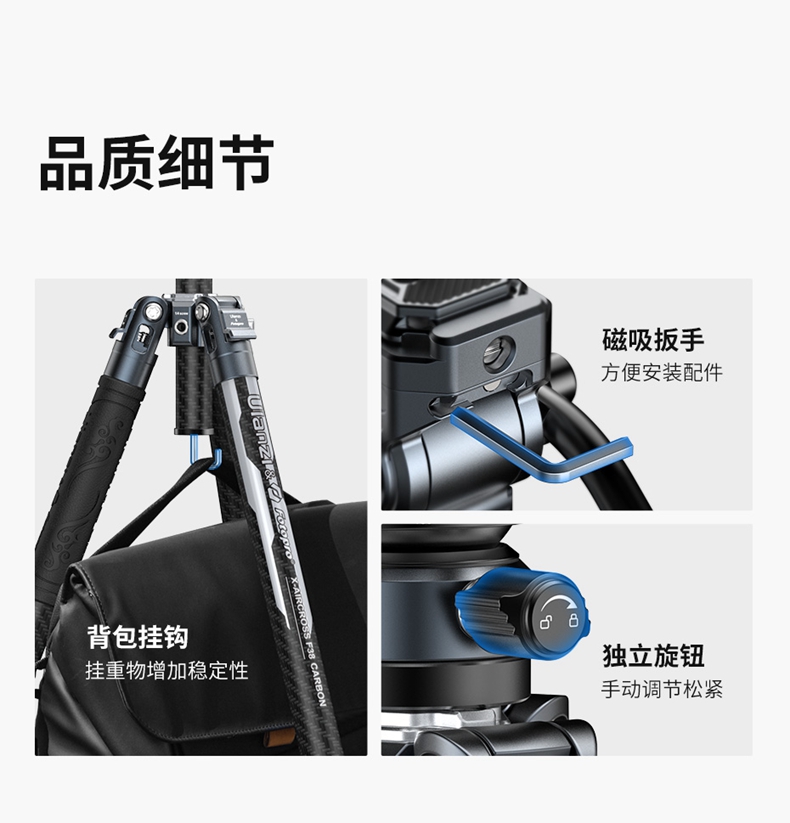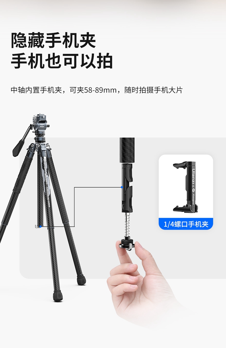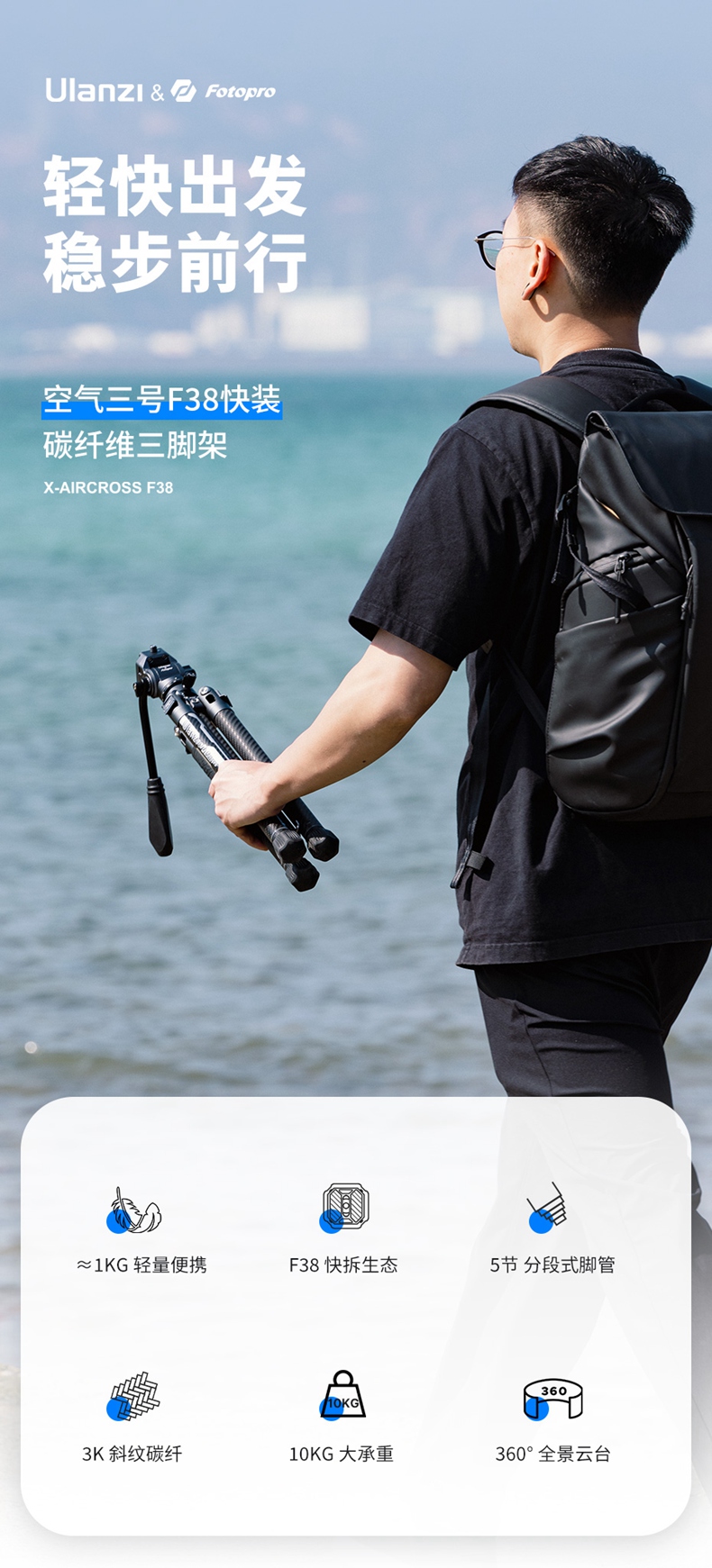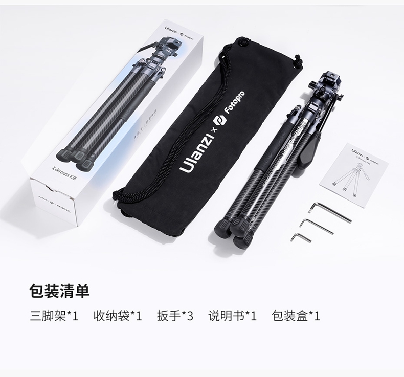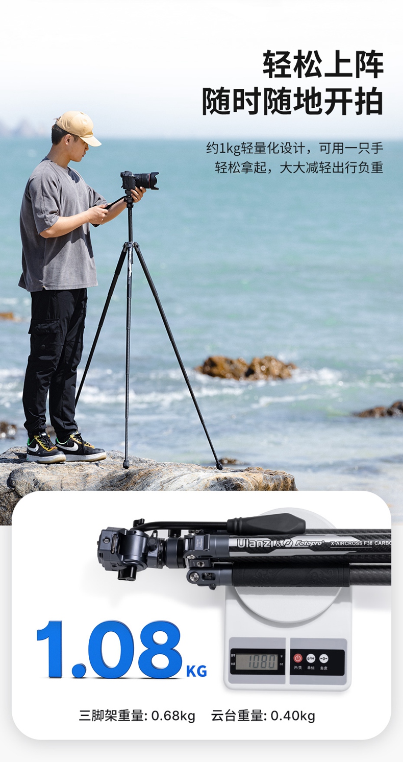 Ulanzi优篮子F38快装空气三号碳纤维三脚架富图宝联名专业相机单反微单轻便携摄影像全景云台旅行拍摄三角架