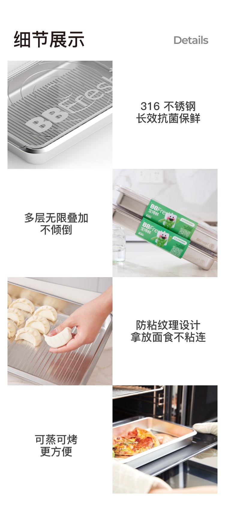 BBFresh宝得鲜316不锈钢饺子盒馄饨收纳盒水饺防粘保鲜盒烤盘