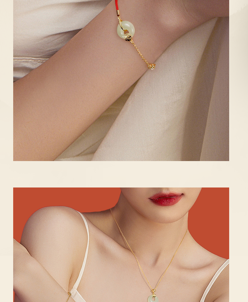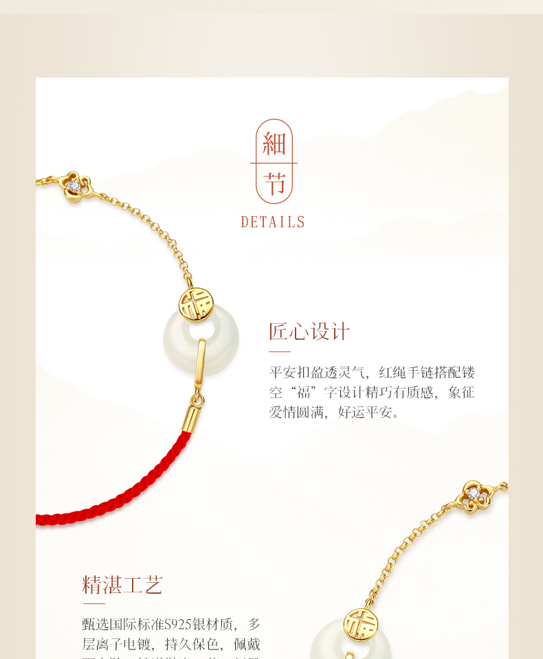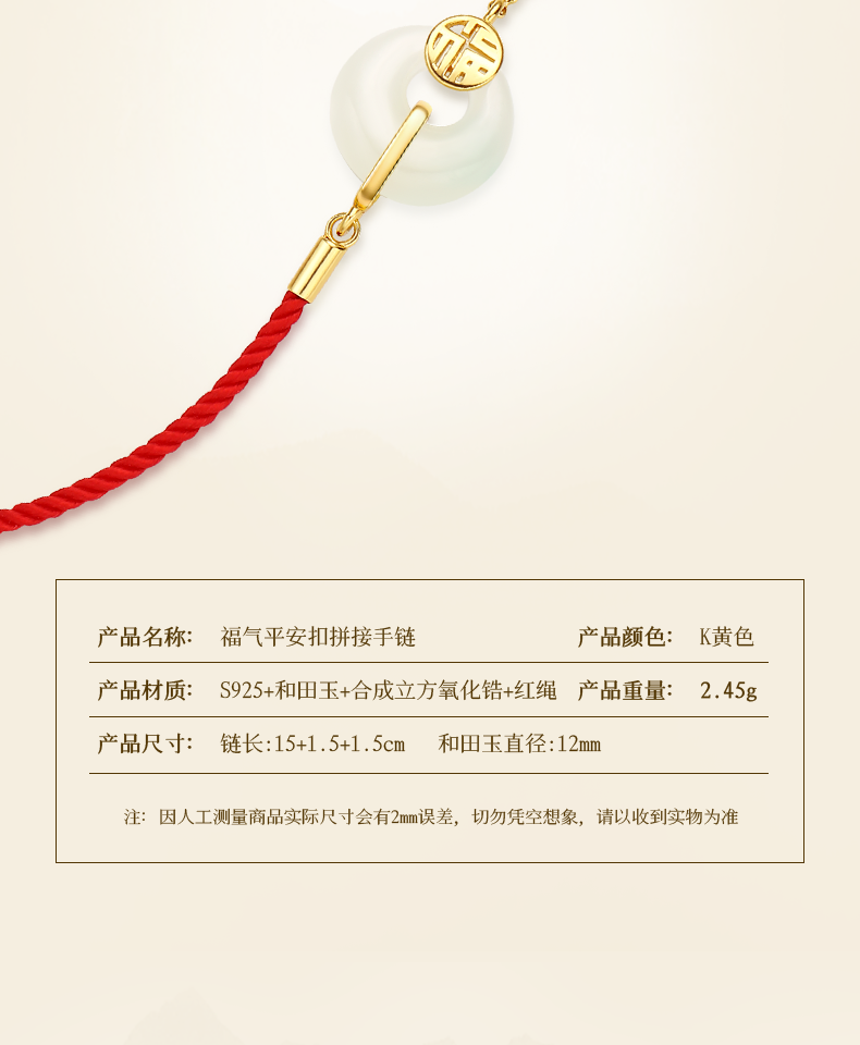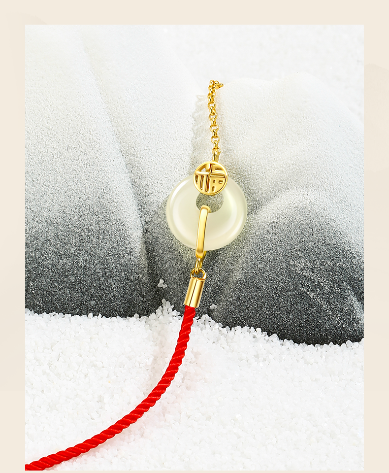 Fanci范琦×宫主福气平安扣【和田玉半红绳手链】生日礼物送妈妈 送女友