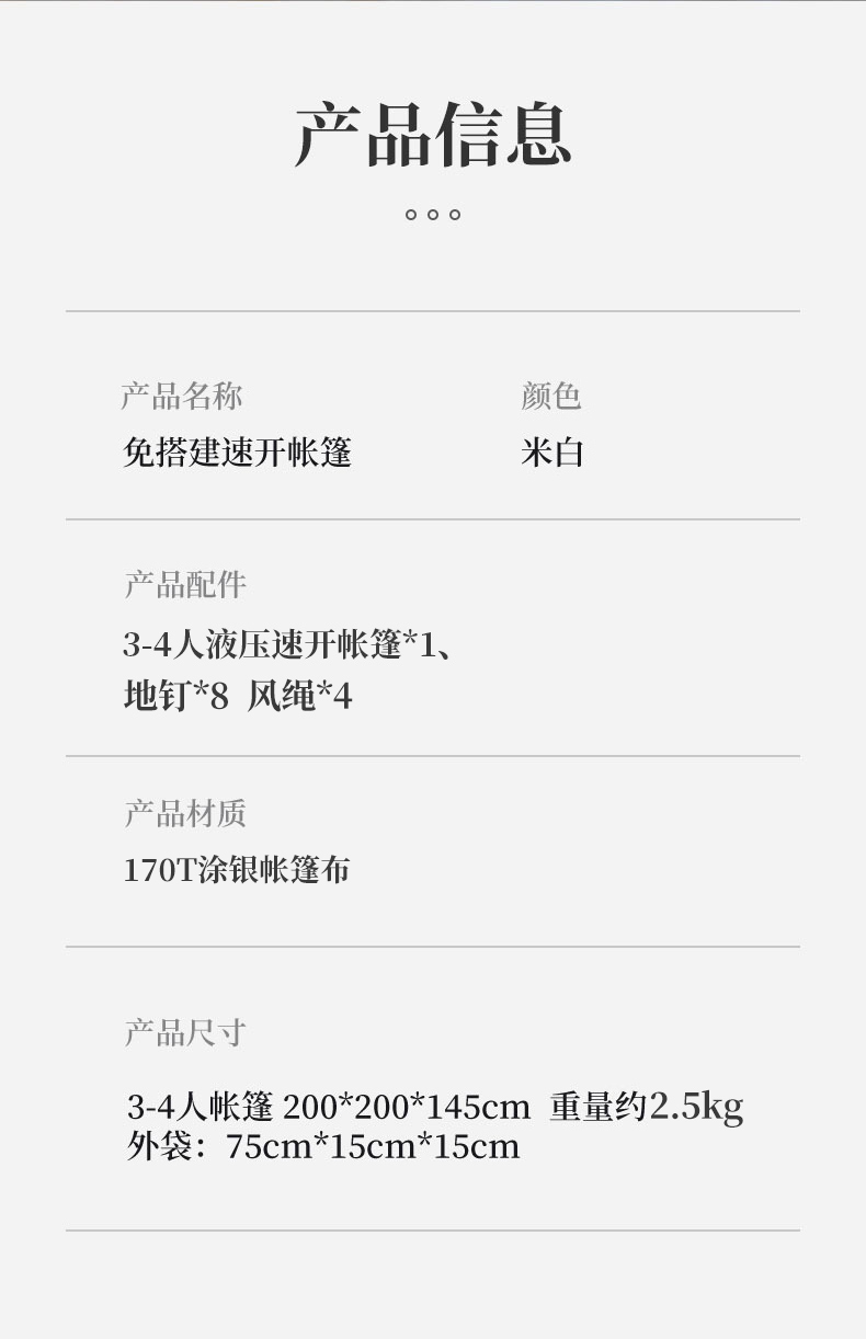 飞图乐(FTLY)升级液压全自动帐3-4人-米白 LP