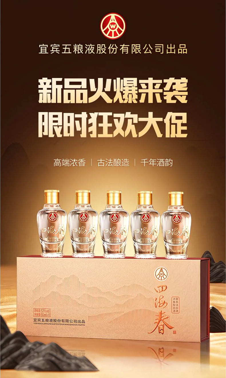 热卖中!!【五粮液股份公司出品·四海春小金条】五瓶装礼盒 52°浓香型白酒 50ml*5瓶/盒 一盒一码,可扫码查真伪