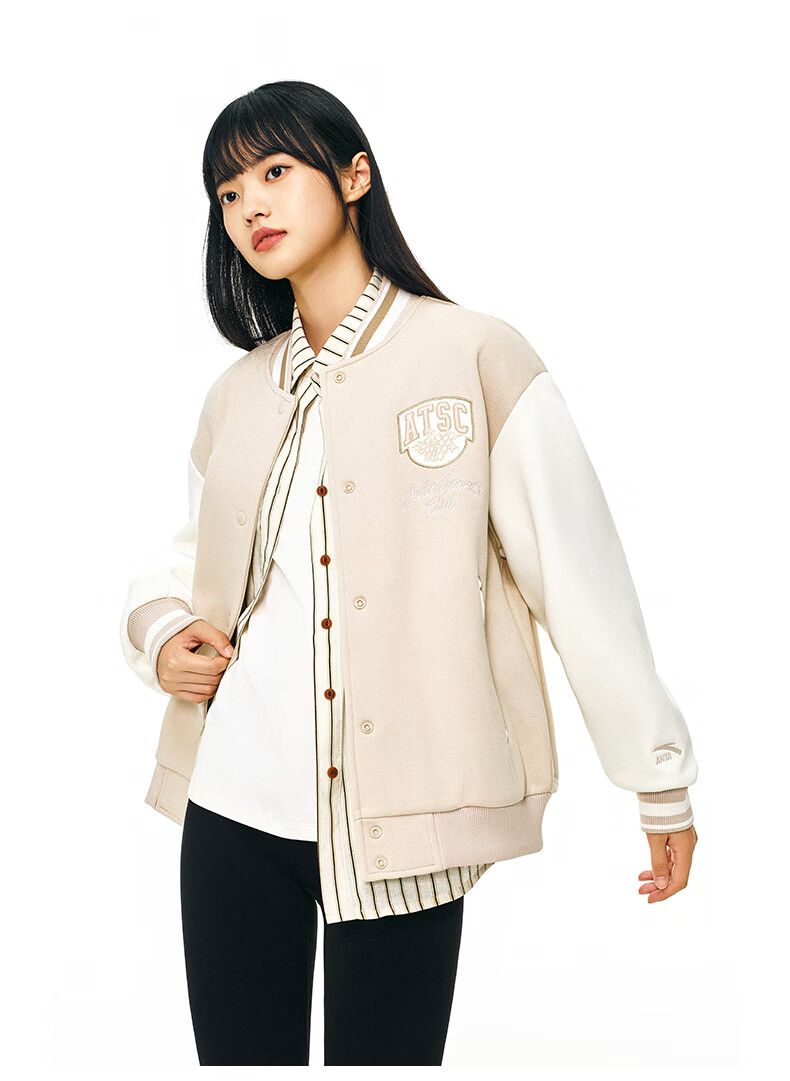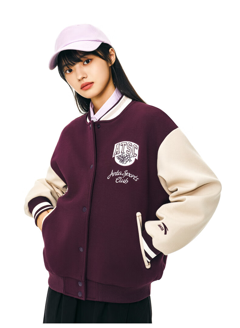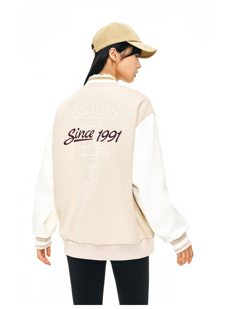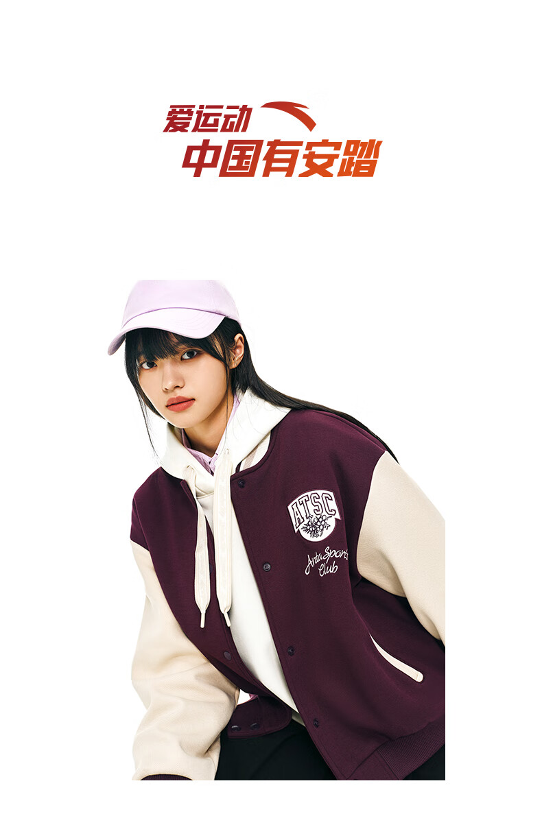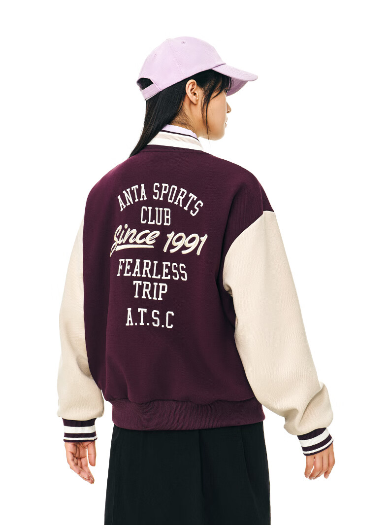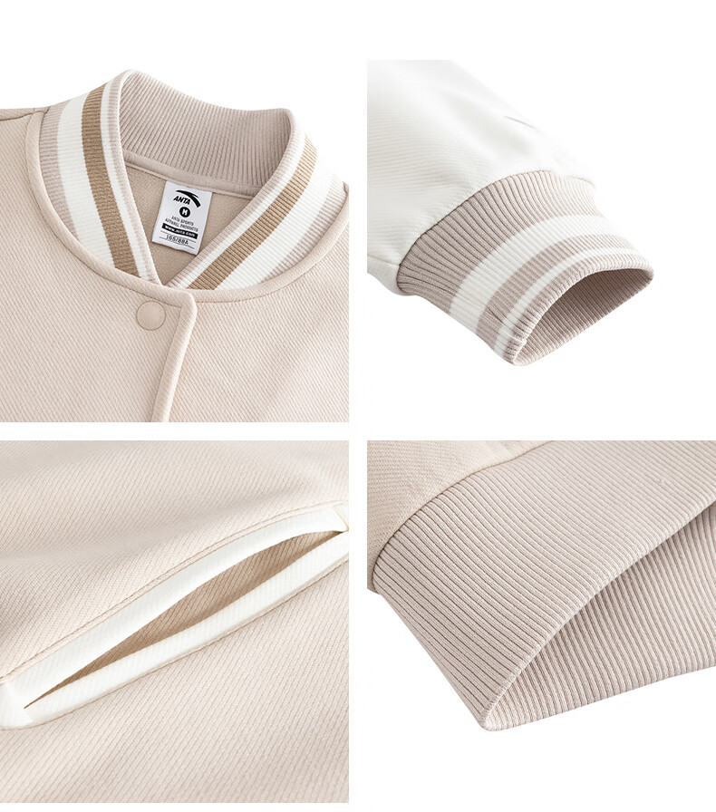 安踏加绒棒球服 女款冬季保暖休闲外套夹克针织运动上衣162448703N
