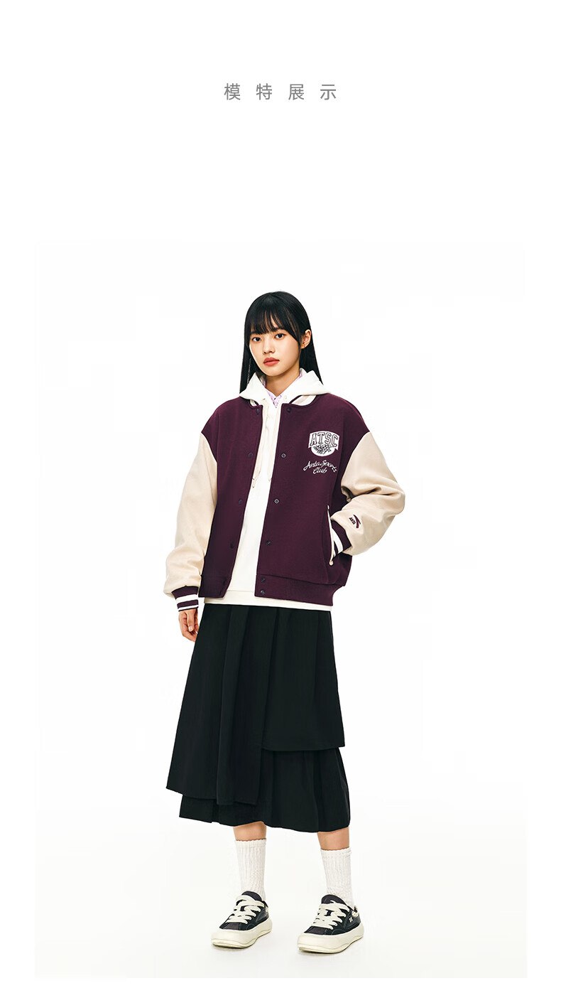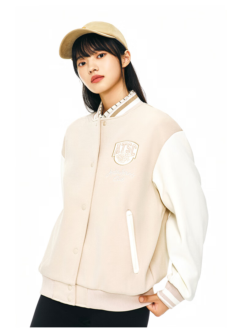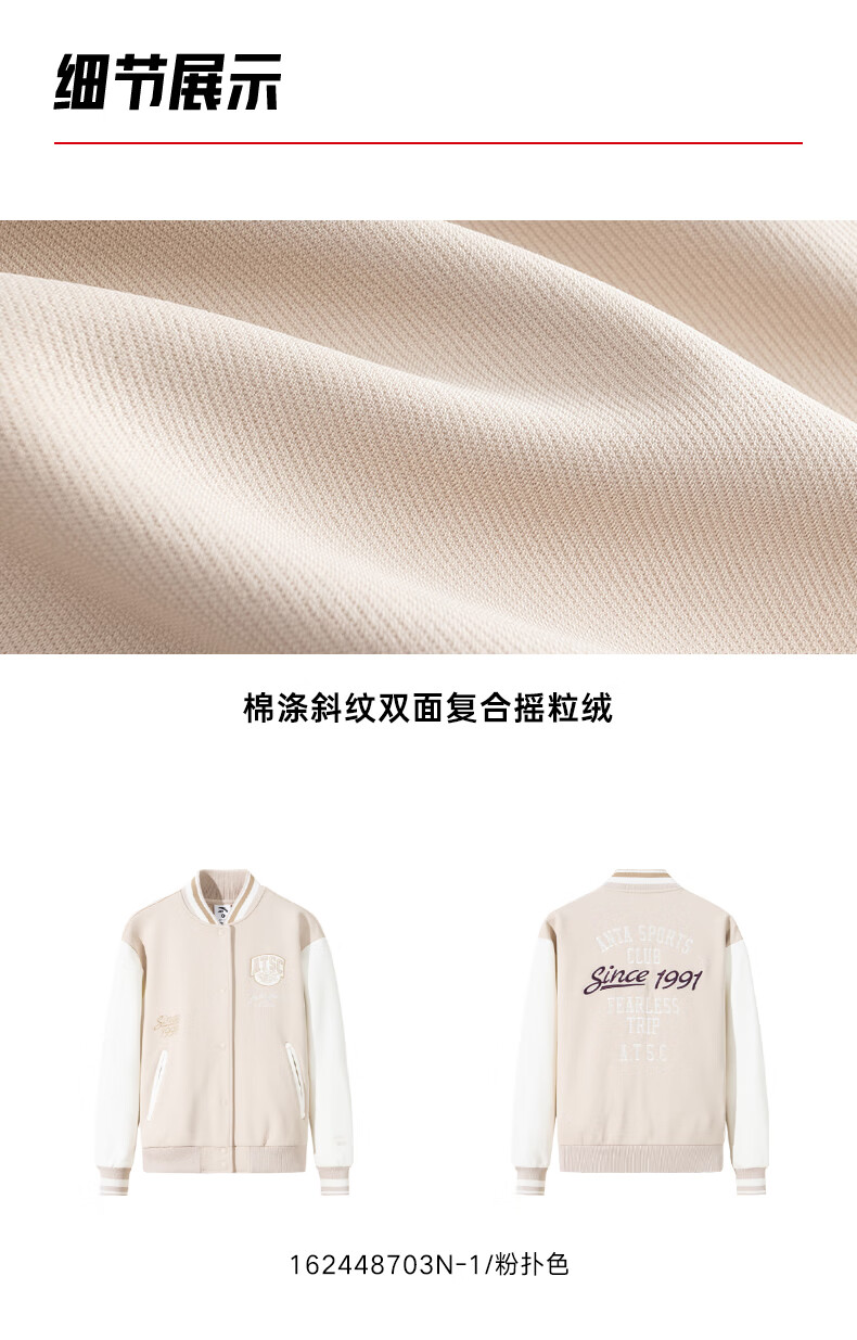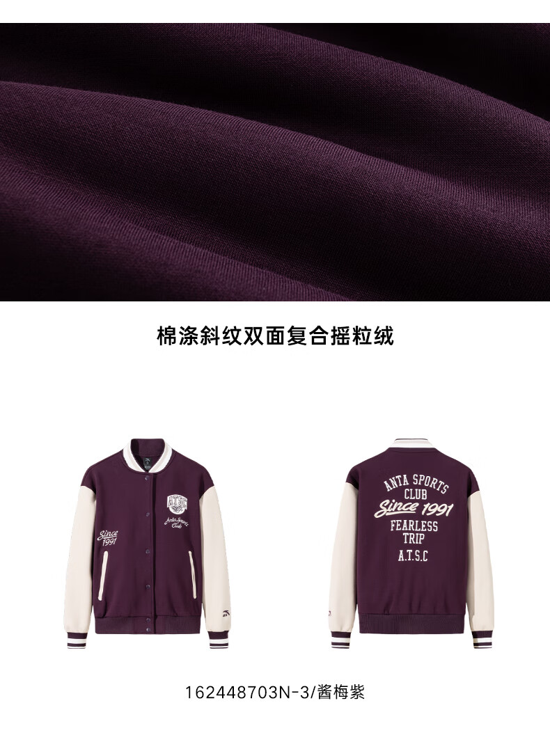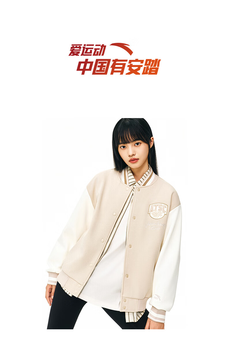 安踏加绒棒球服 女款冬季保暖休闲外套夹克针织运动上衣162448703N