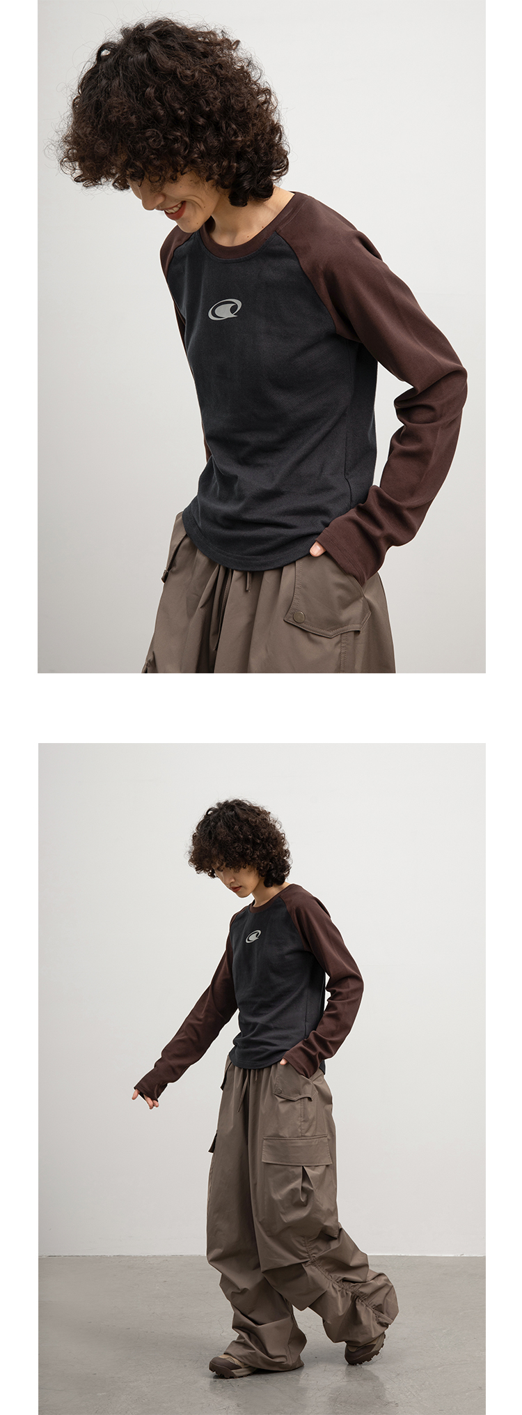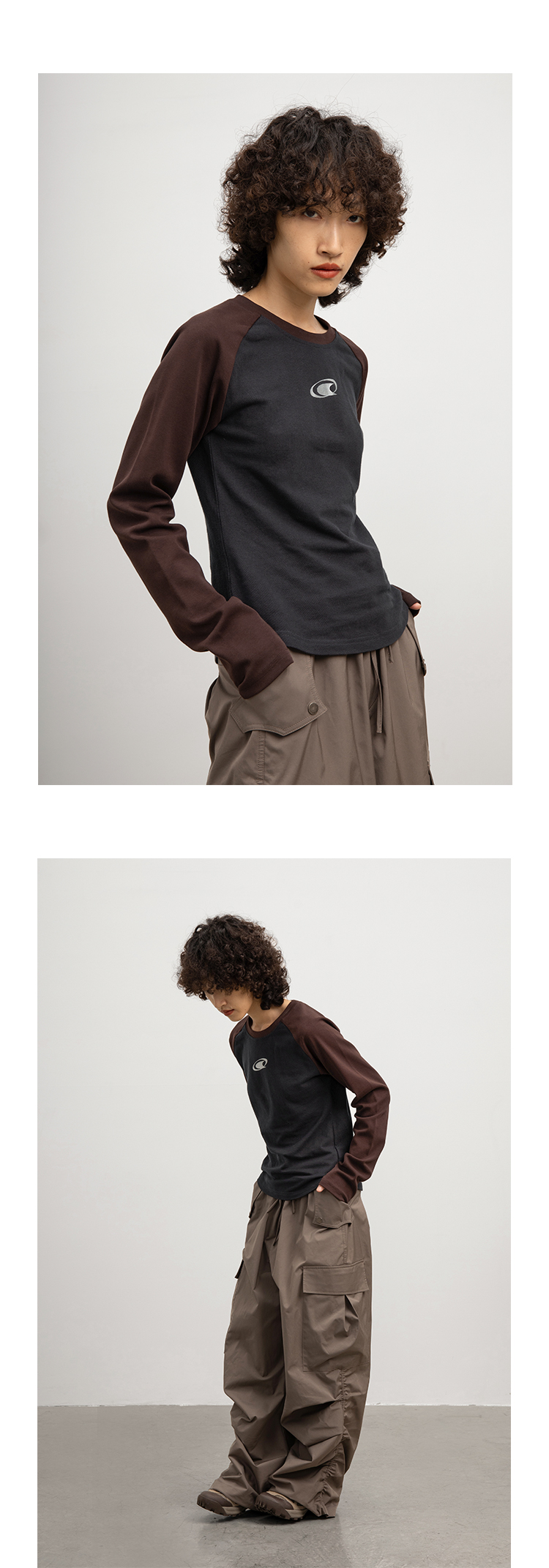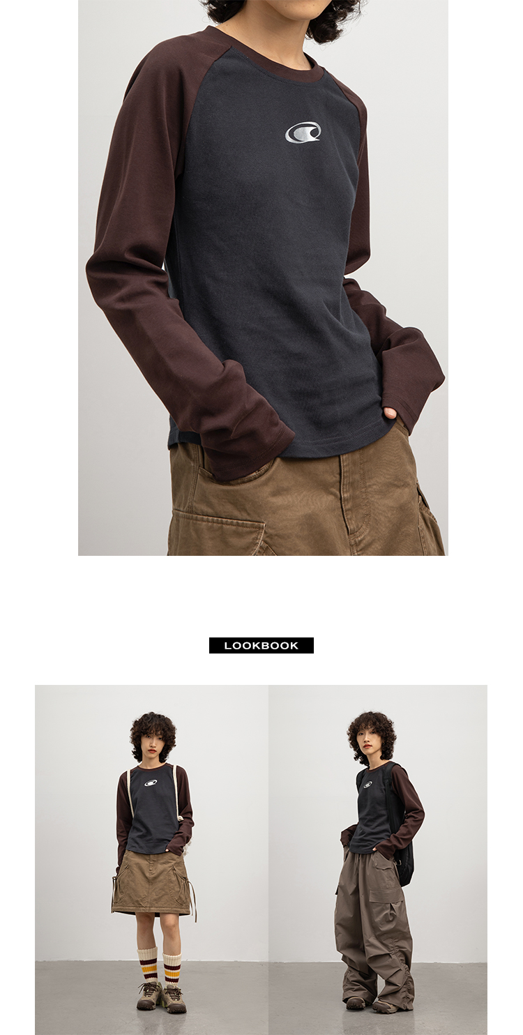 CryingCenter 金属银logo插肩袖拼接长袖TEE 哭喊中心