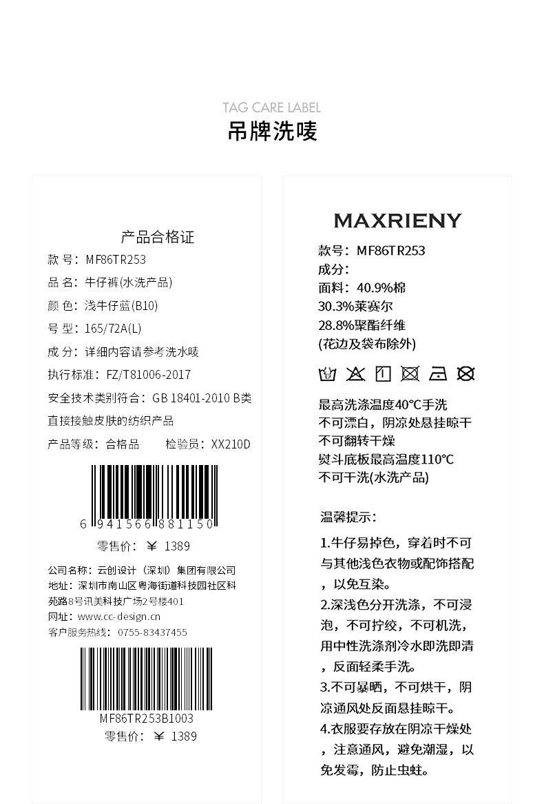 玛克门店发货:MAXRIENY高腰牛仔裤(货号:MF86TR253)