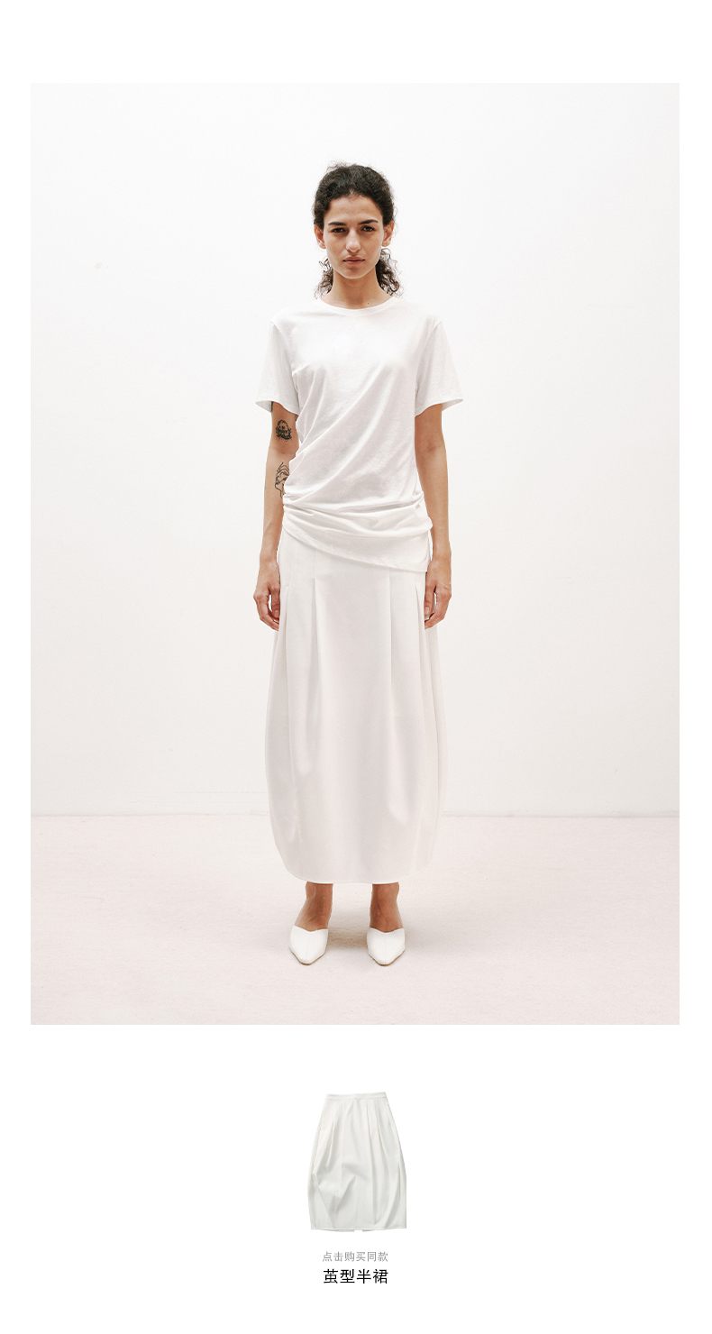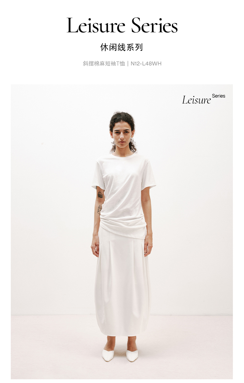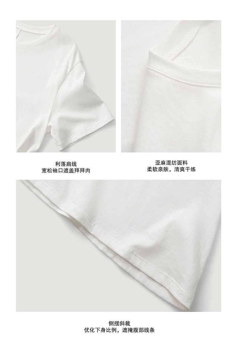 NUTH白色松弛感棉麻堆叠感宽松短袖T恤女