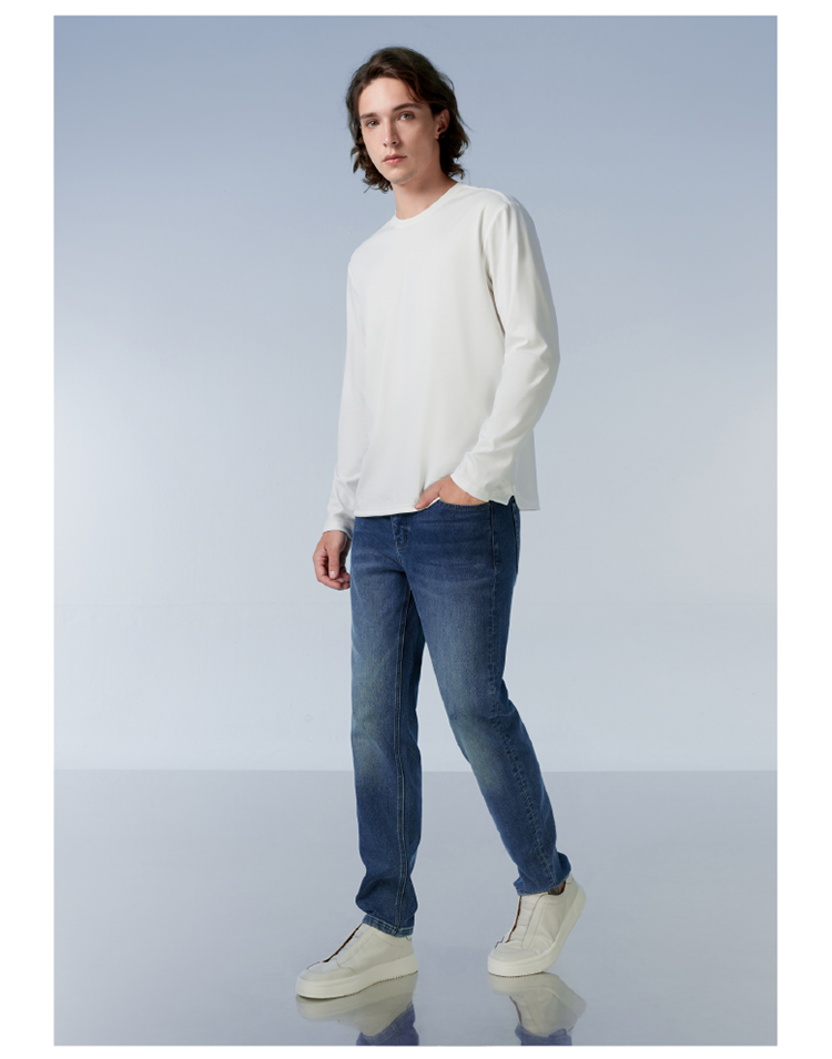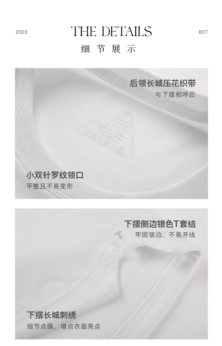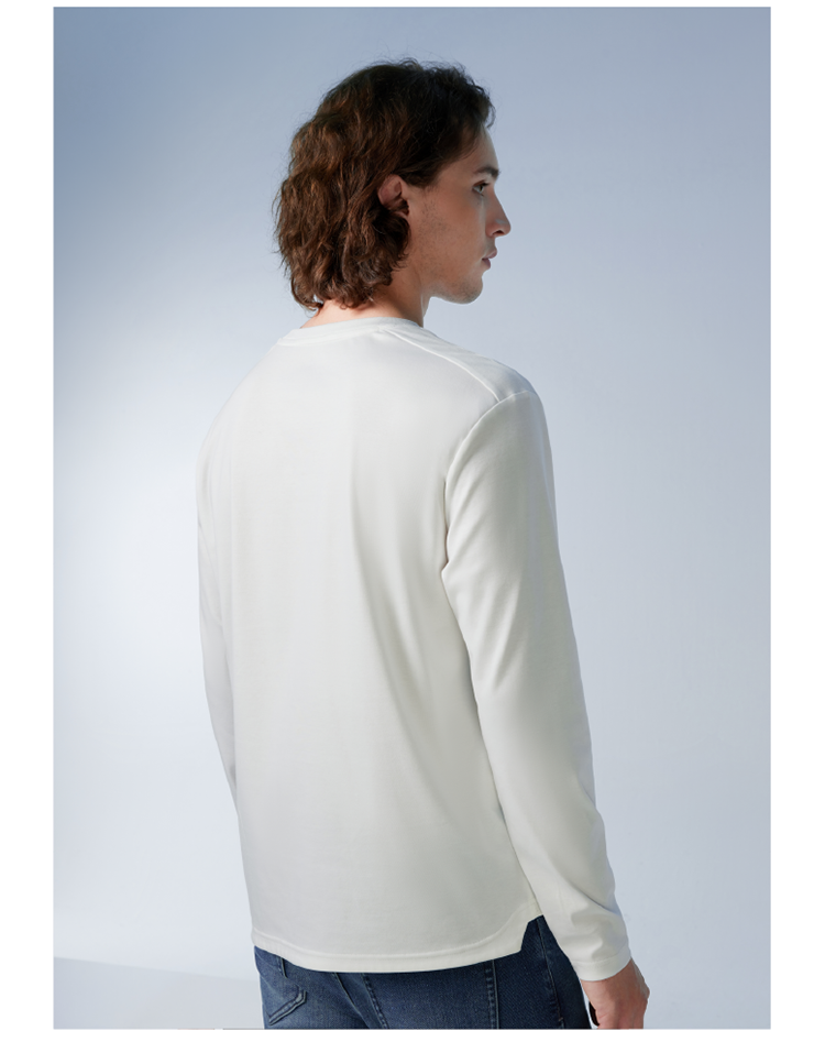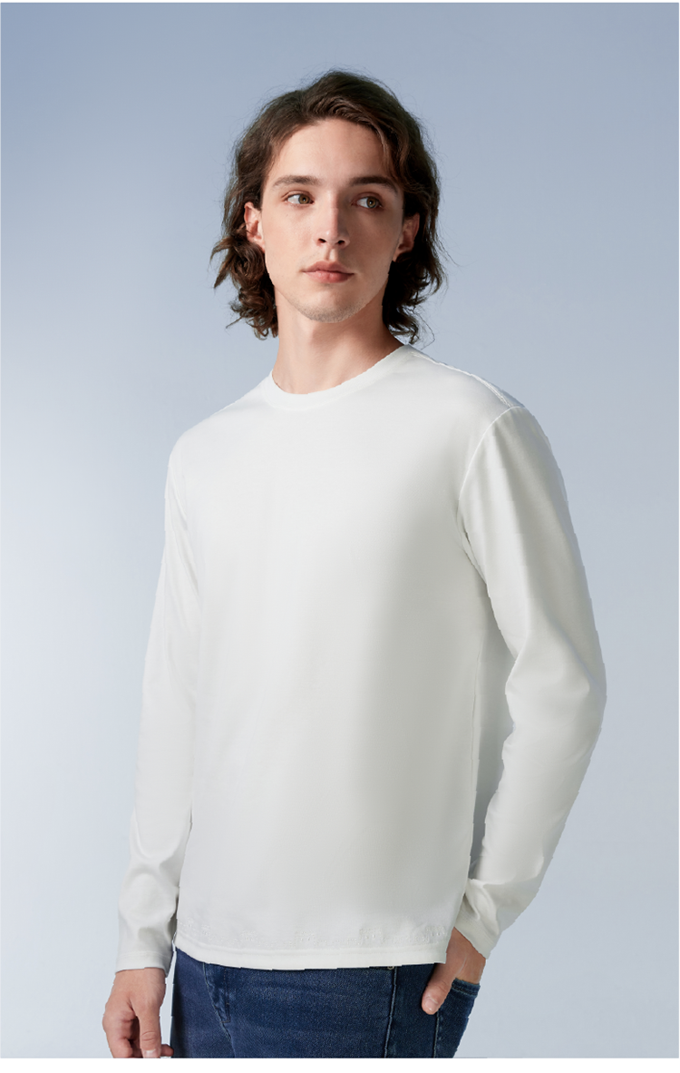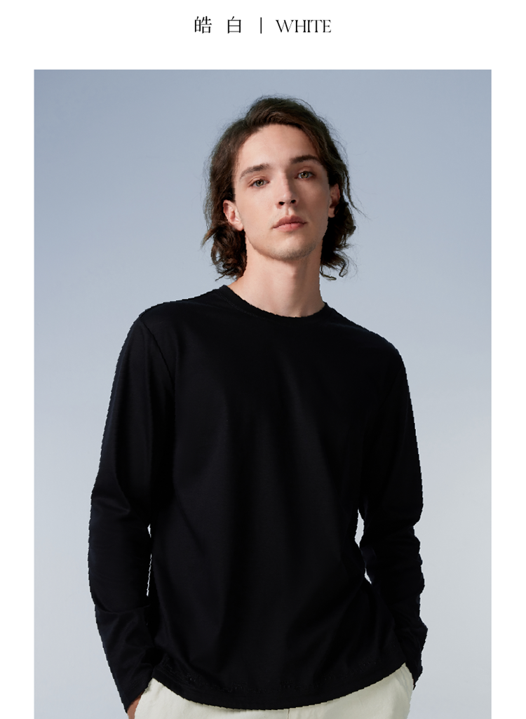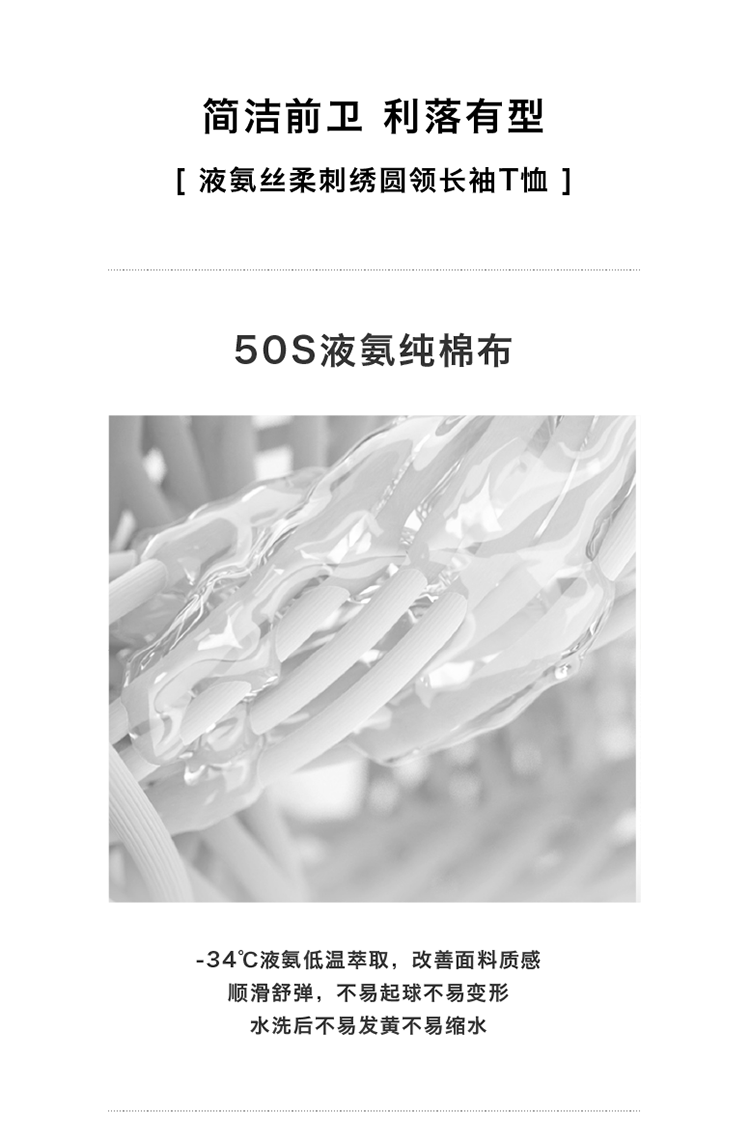 拇指白小T液氨丝柔刺绣圆领长袖T恤无限系列