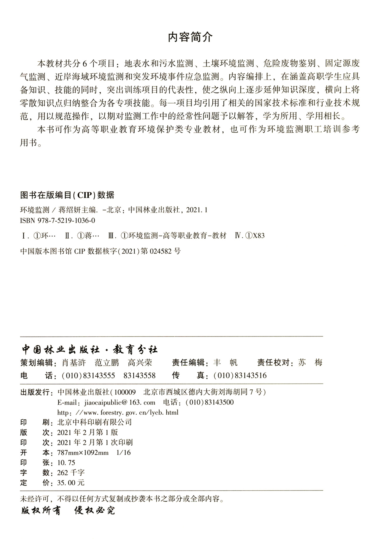 环境监测(辽宁省高水平特色专业群校企合作开发系列教材) 蒋绍妍 1036 中国林业出版社