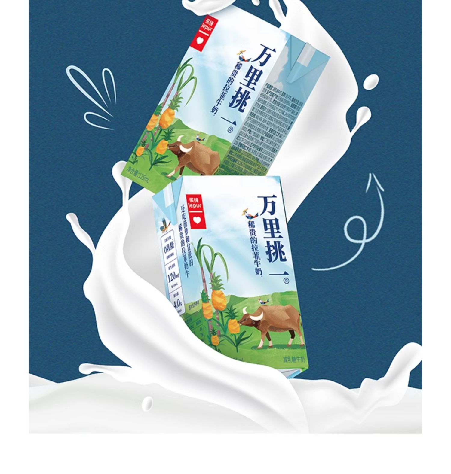 【3月促销活动】乐纯万里挑一水牛奶mini迷你装儿童高钙纯牛奶125ml*9盒/箱0乳糖小奶砖125ml