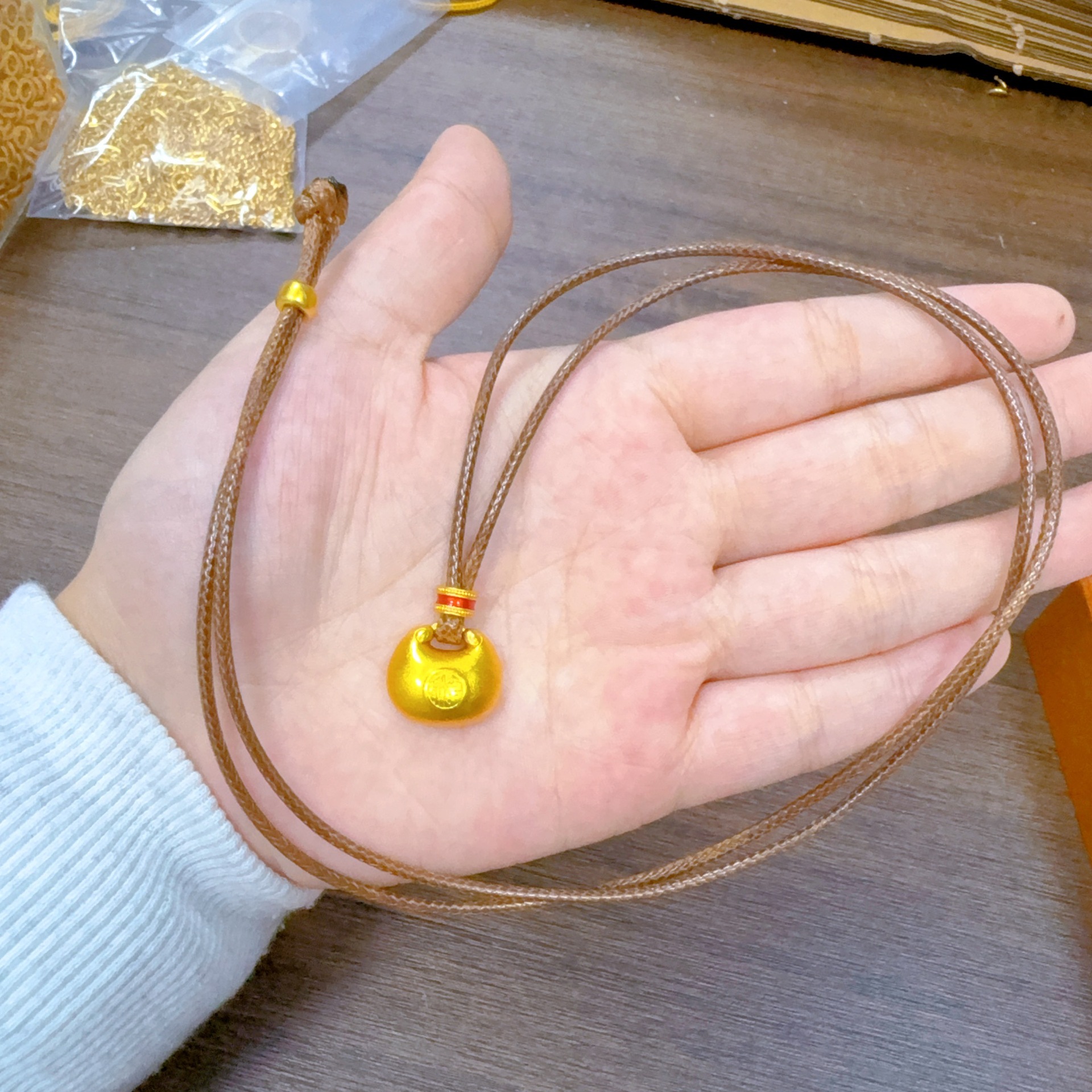 【尺寸】周长约0-70cm,吊坠约1.5*1.5cm