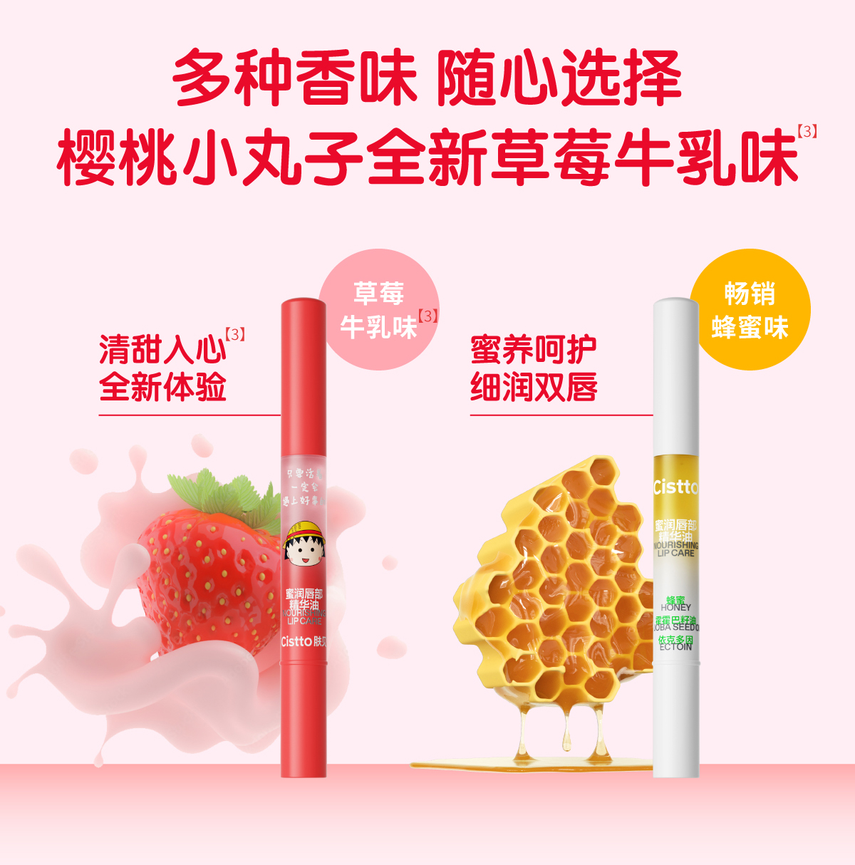 【会员日】肤见蜜润唇部精华油4支,可混选 #蜂蜜味、蜜桃味、葡萄味、草莓味,如需更换口味可联系客服或下单时备注