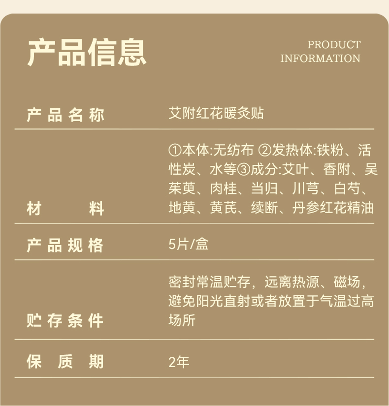 甘之颐 艾草红花暖灸贴 5片/盒 精油暖贴姨妈草本穴位草本贴热敷贴
