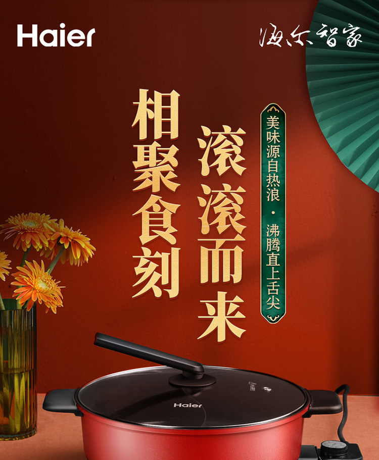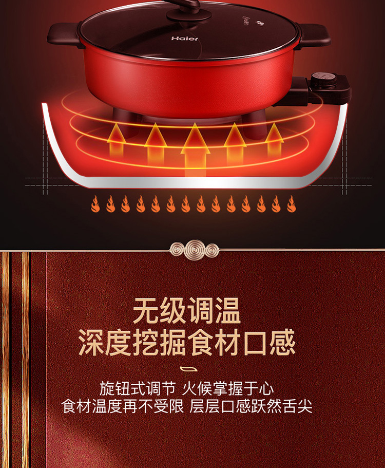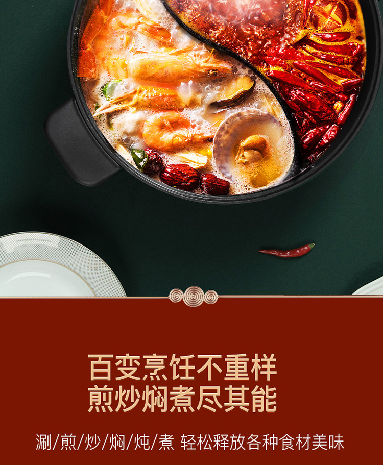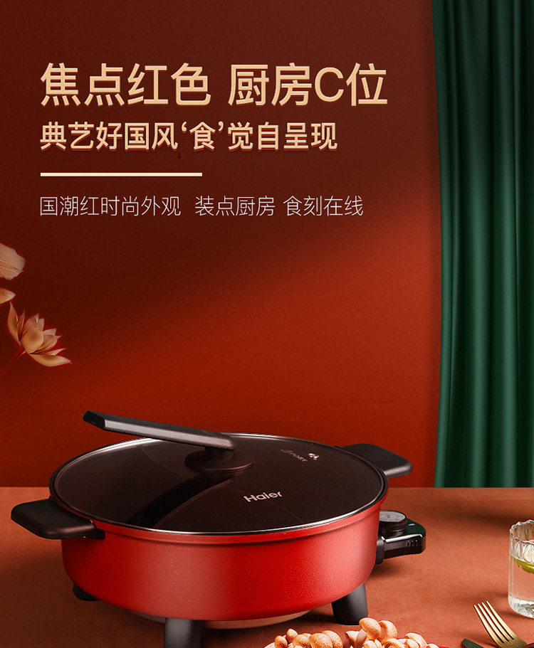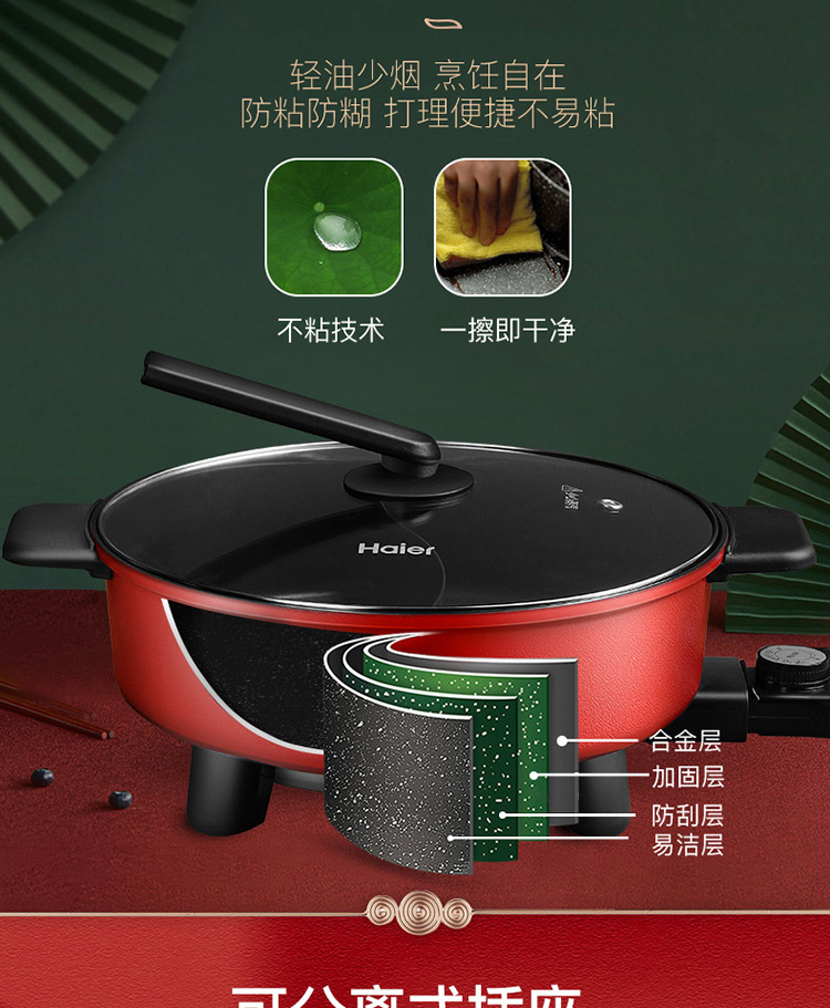 海尔电锅家用电火锅大容量50XY3R电热锅烤肉鸳鸯锅不粘锅智能宿舍
