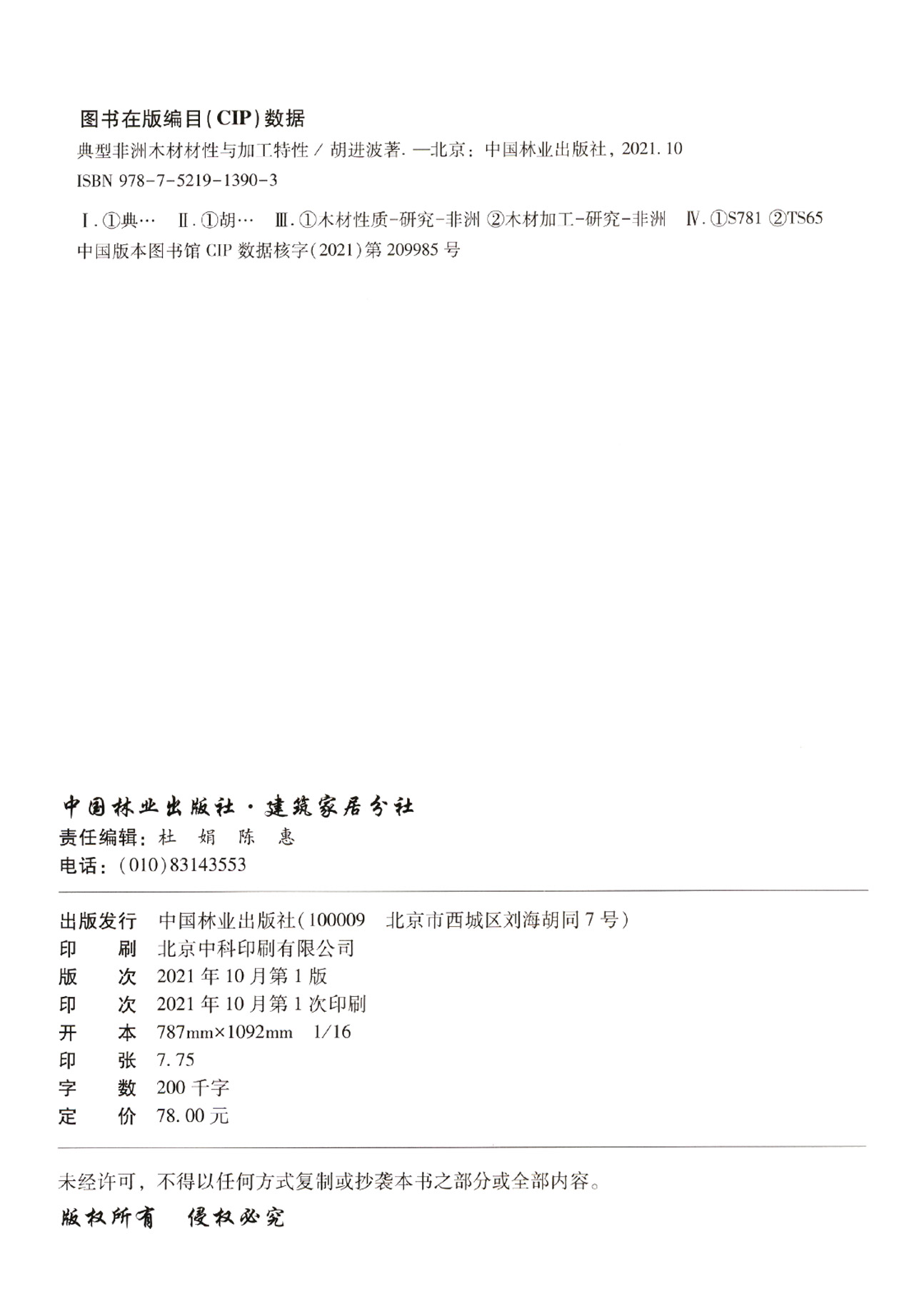 为了节约资源、高效利用非洲木材,本书选择了9种典型非洲木材的活立木、宏微观特征、物理性能、力学性能、机械加工性能、涂饰性能进行陈述介绍,对于地板、家具、胶合板、木线条等生产具有重要的指导作用。本书中隶属5科的9种非洲木材是本研究团队耗时5年多时间,从木材加工角度比较全面地对典型非洲木材进行的研究,内容深入浅出,浅显易懂,可以供相关科研工作者、检验检疫人员、生产者、外贸人员等作为参考书目,也可以为本领域技术研发、产品创新和科学研究提供思路与参考。本书中未介绍木材化学内容,对科研和技术研发来看是欠缺部分。