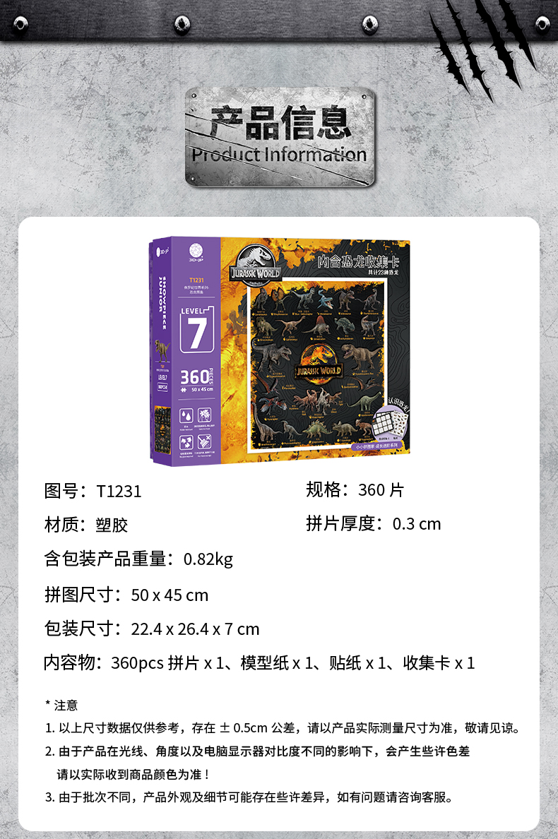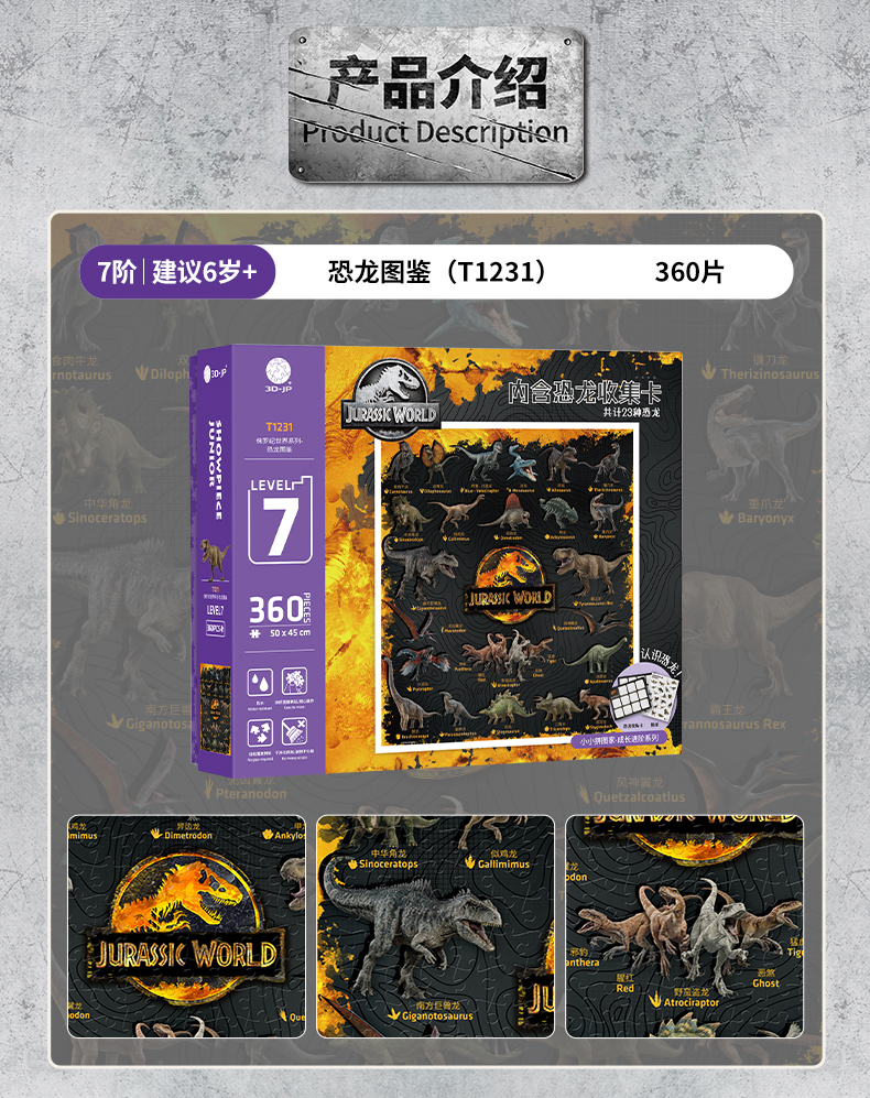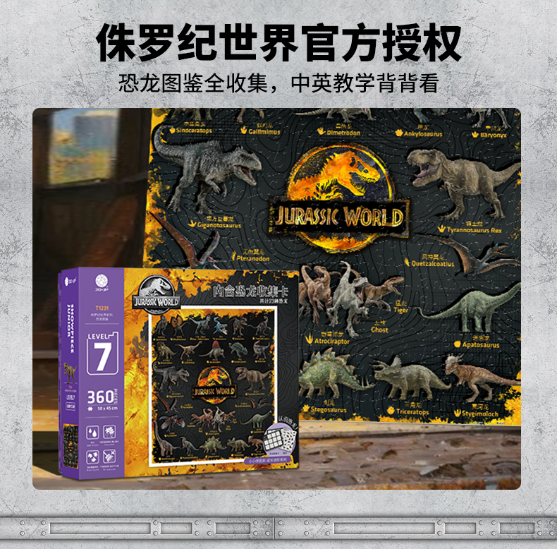 360片7阶 儿童拼图 T1231 侏罗纪世界系列-恐龙图鉴