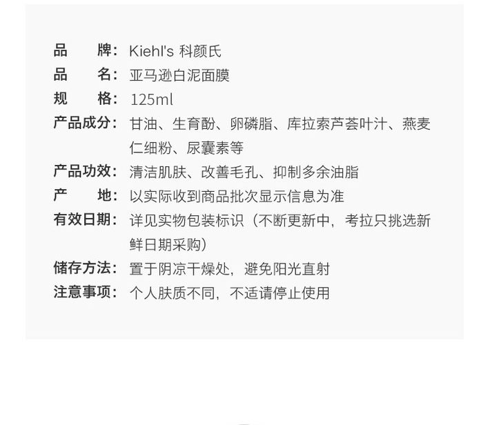 【保税仓cn】科颜氏亚马逊白泥面膜125ML(效期:2026.09)