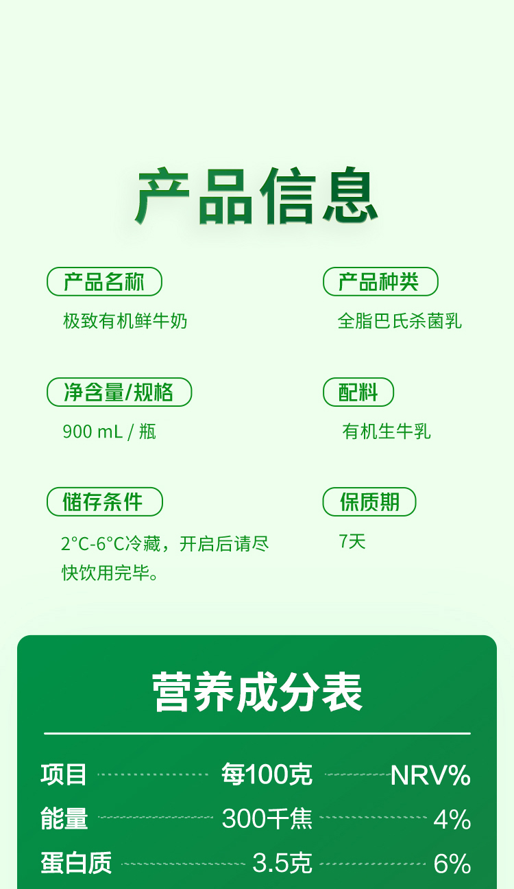 【自提-低温】极致有机鲜牛奶900ml*6