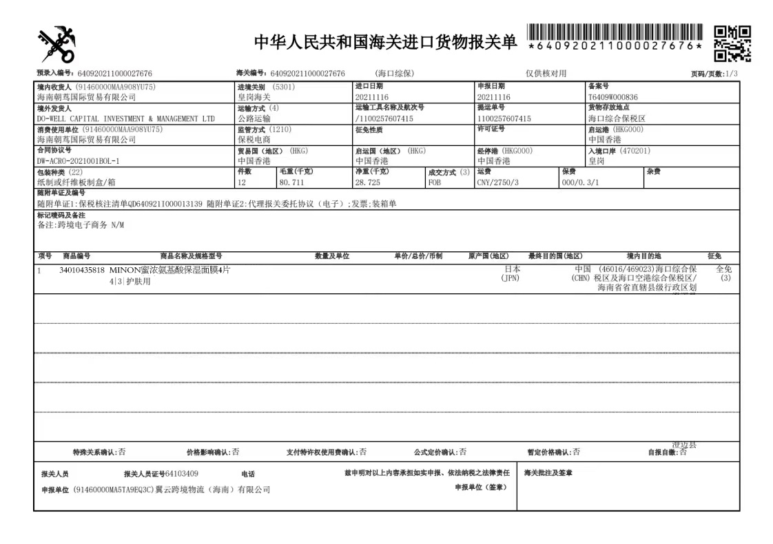 MINON蜜浓氨基酸保湿面膜4片