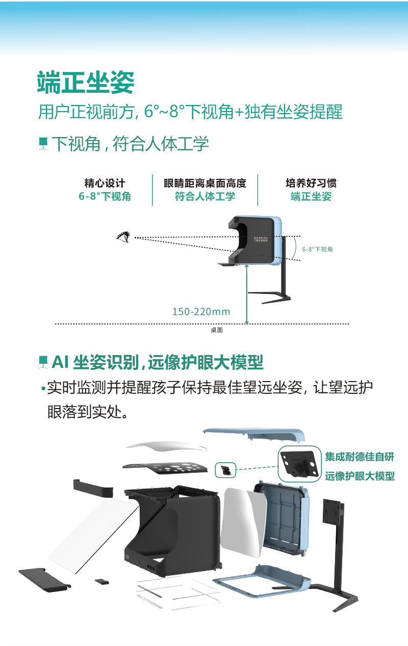 耐德视读写台儿童护眼读写平台AI识别端正坐姿 拉远3-8米