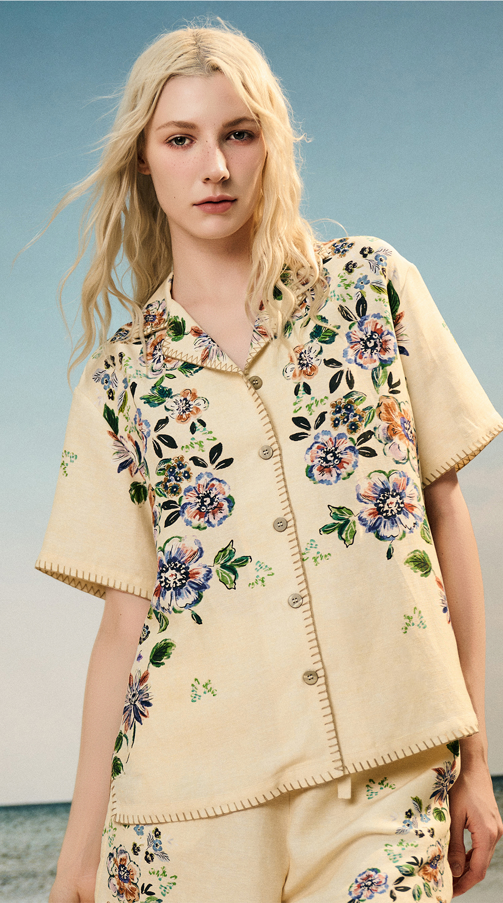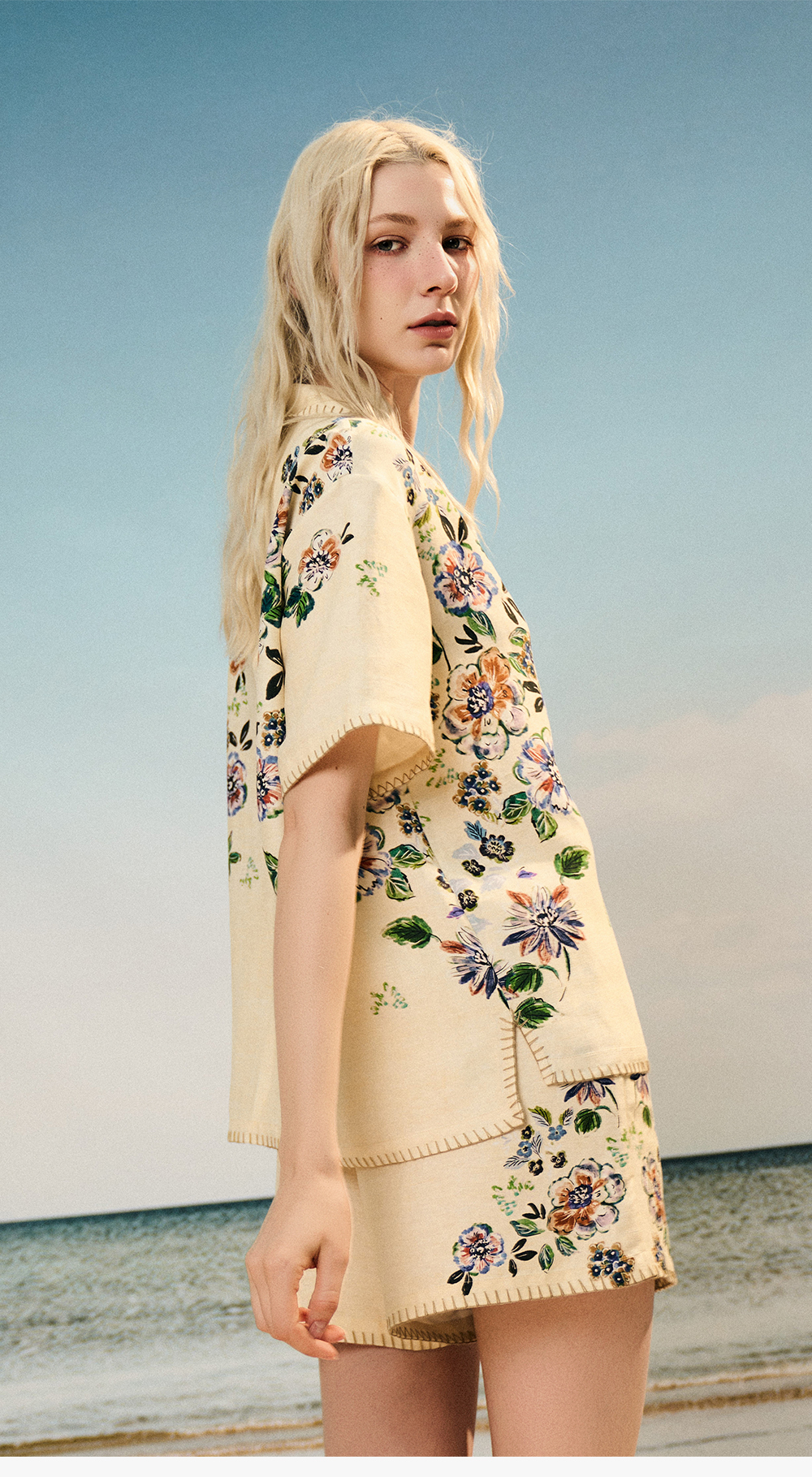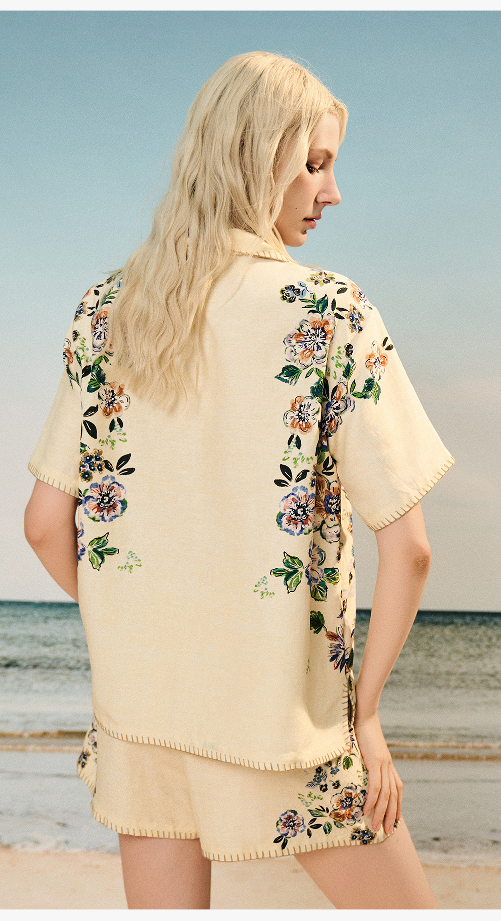 Soloseta女士海边度假风短袖短裤套装丝麻印花睡衣2025年秋