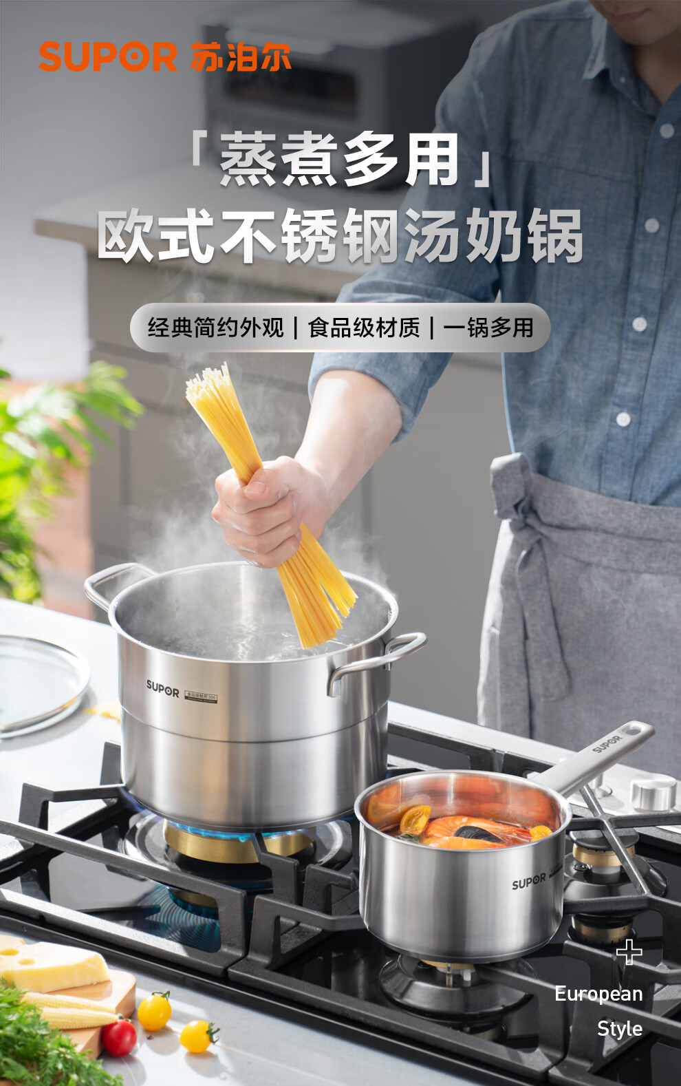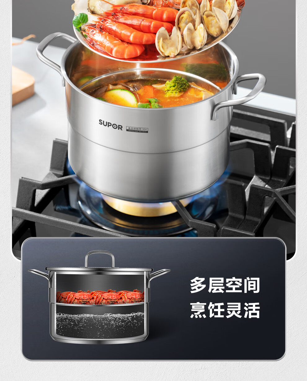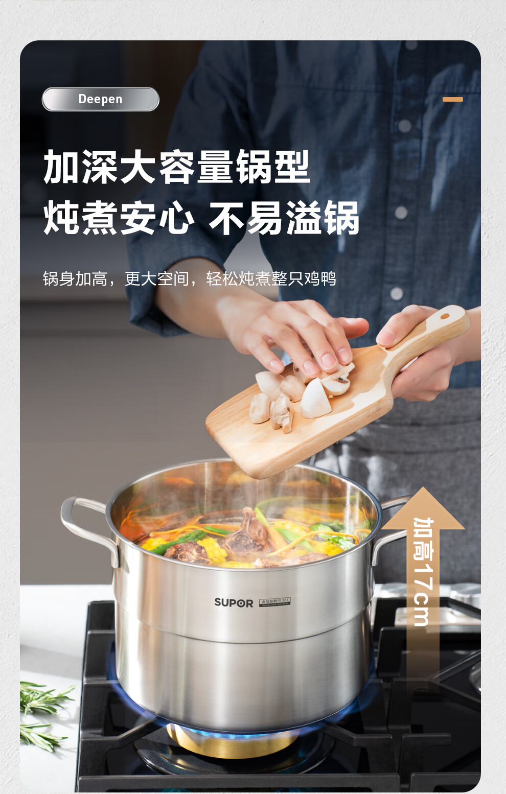 苏泊尔 汤锅家用304不锈钢锅 20CM ST20WA1-欧式汤锅