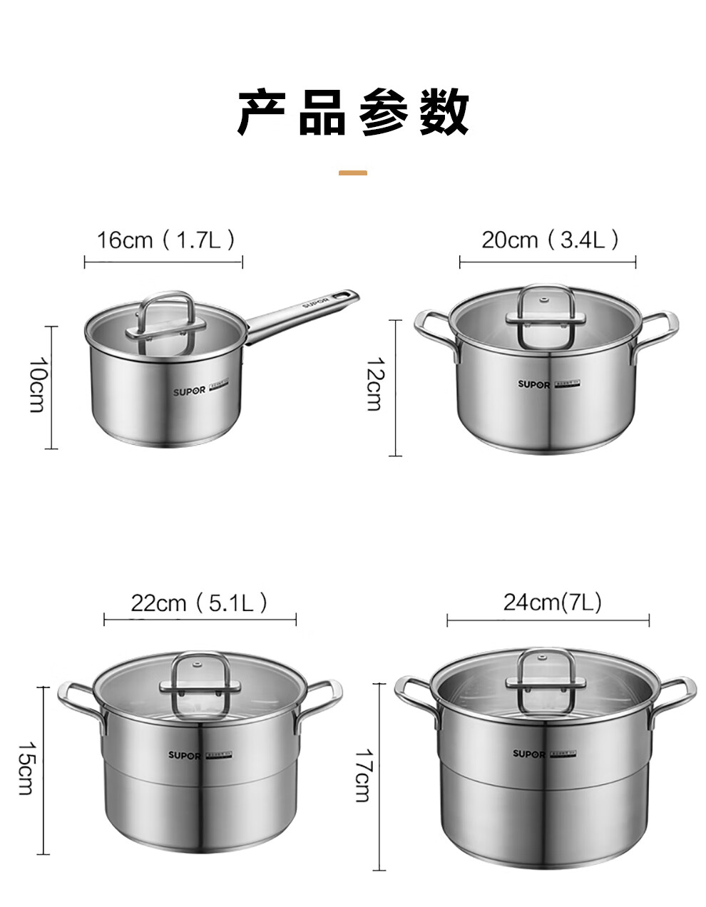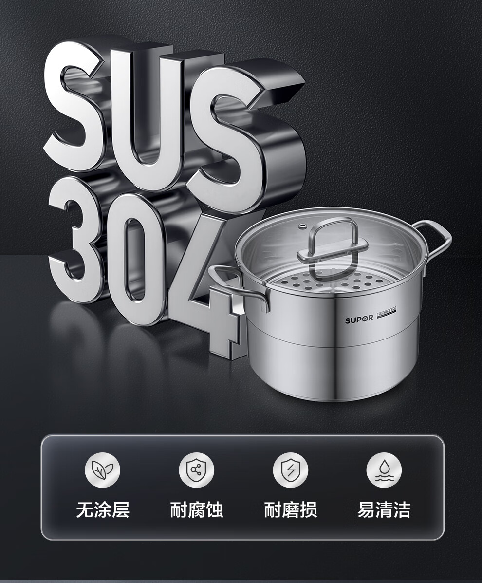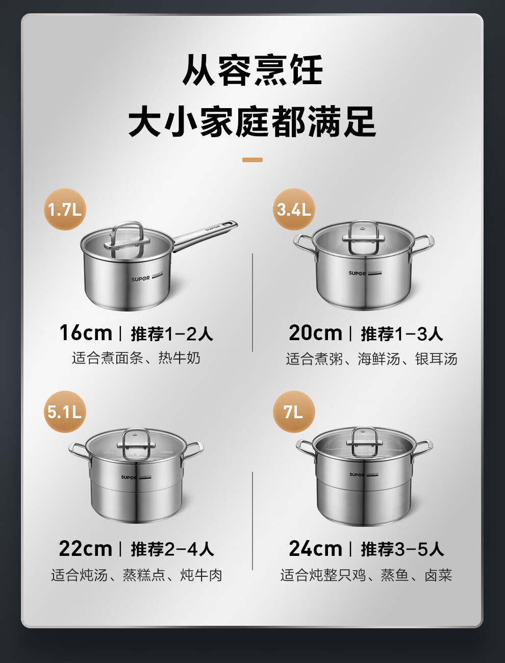 苏泊尔 汤锅家用304不锈钢锅 20CM ST20WA1-欧式汤锅
