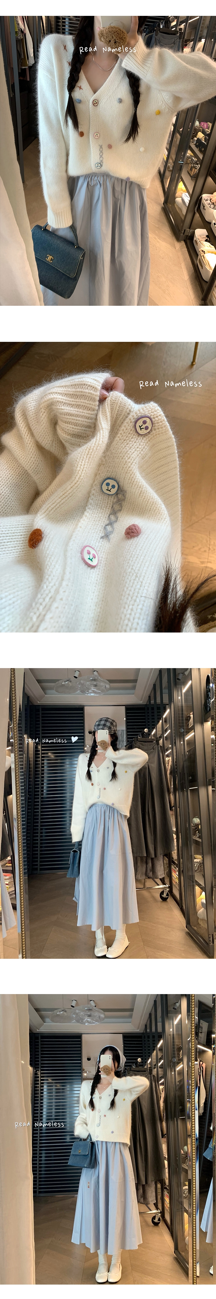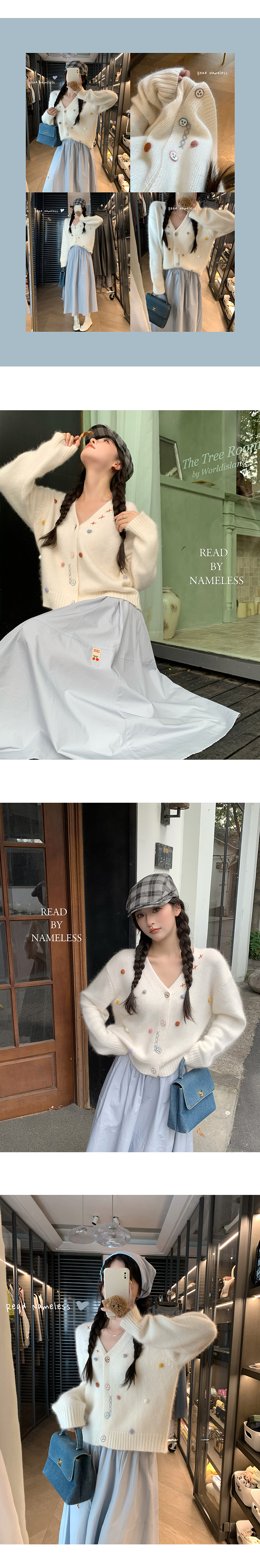 Read Nameless /浣熊绒羊毛樱桃扣开衫+蓝色仿天丝棉樱桃标半裙 2024/9/28