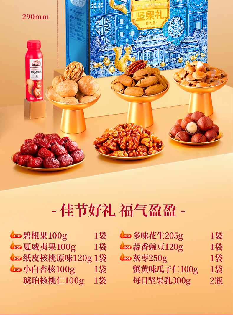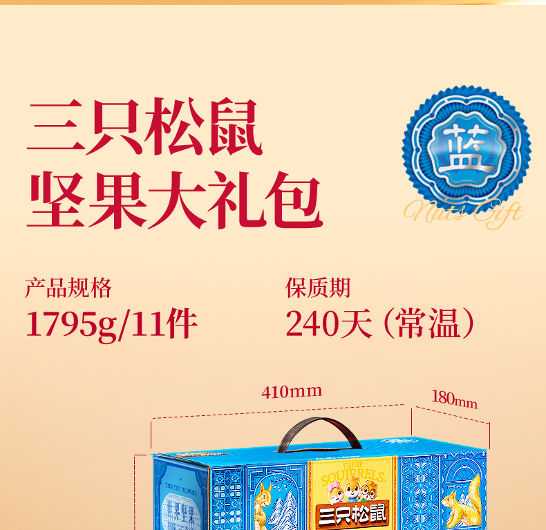优选丨三只松鼠1.795kg坚果琉光蓝礼盒过年公司团购福利送礼年货大礼包